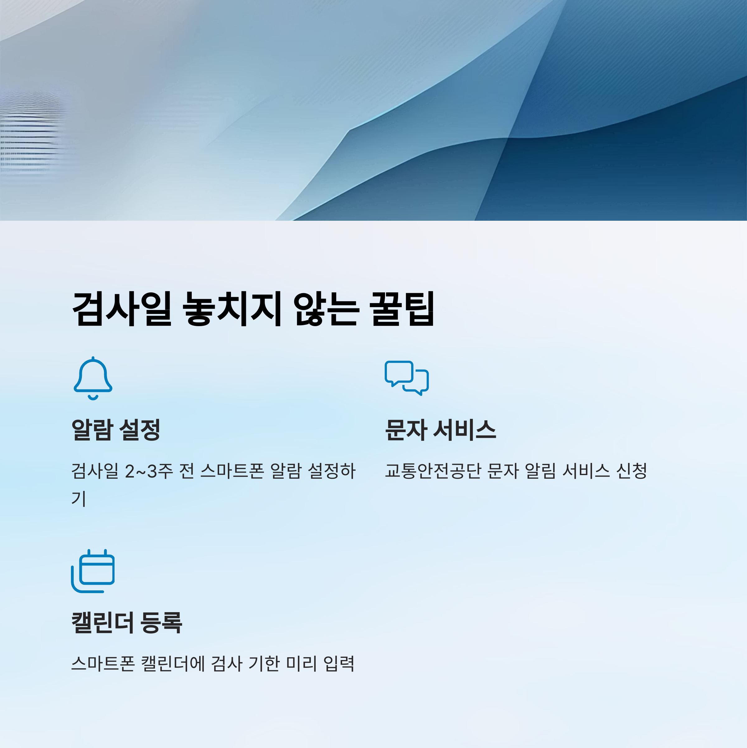 - 📩 교통안전공단 문자 서비스 신청: 검사일이 다가오면 자동 안내 문자 받기