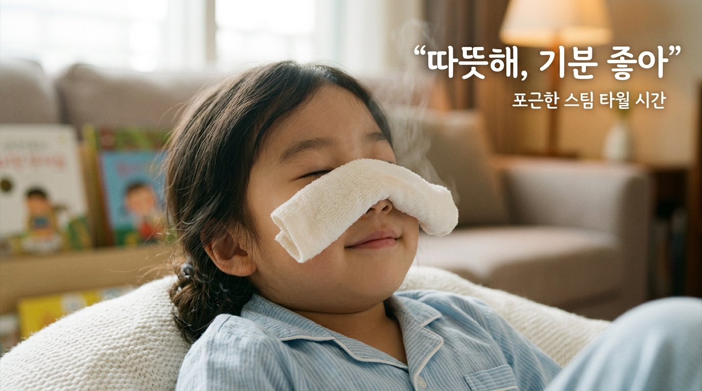 환경 관리 외에도 코 세척은 비염 완화의 '치트키'입니다. 아이가 거부하지 않는다면 저농도 생리식염수로 코 안의 항원과 콧물을 씻어내 주세요. 코 세척이 어렵다면 따뜻한 물에 적신 수건(스팀타월)을 코 위에 3분 정도 올려두는 것만으로도 점막의 혈액순환을 도와 코가 뻥 뚫리는 효과를 볼 수 있습니다.