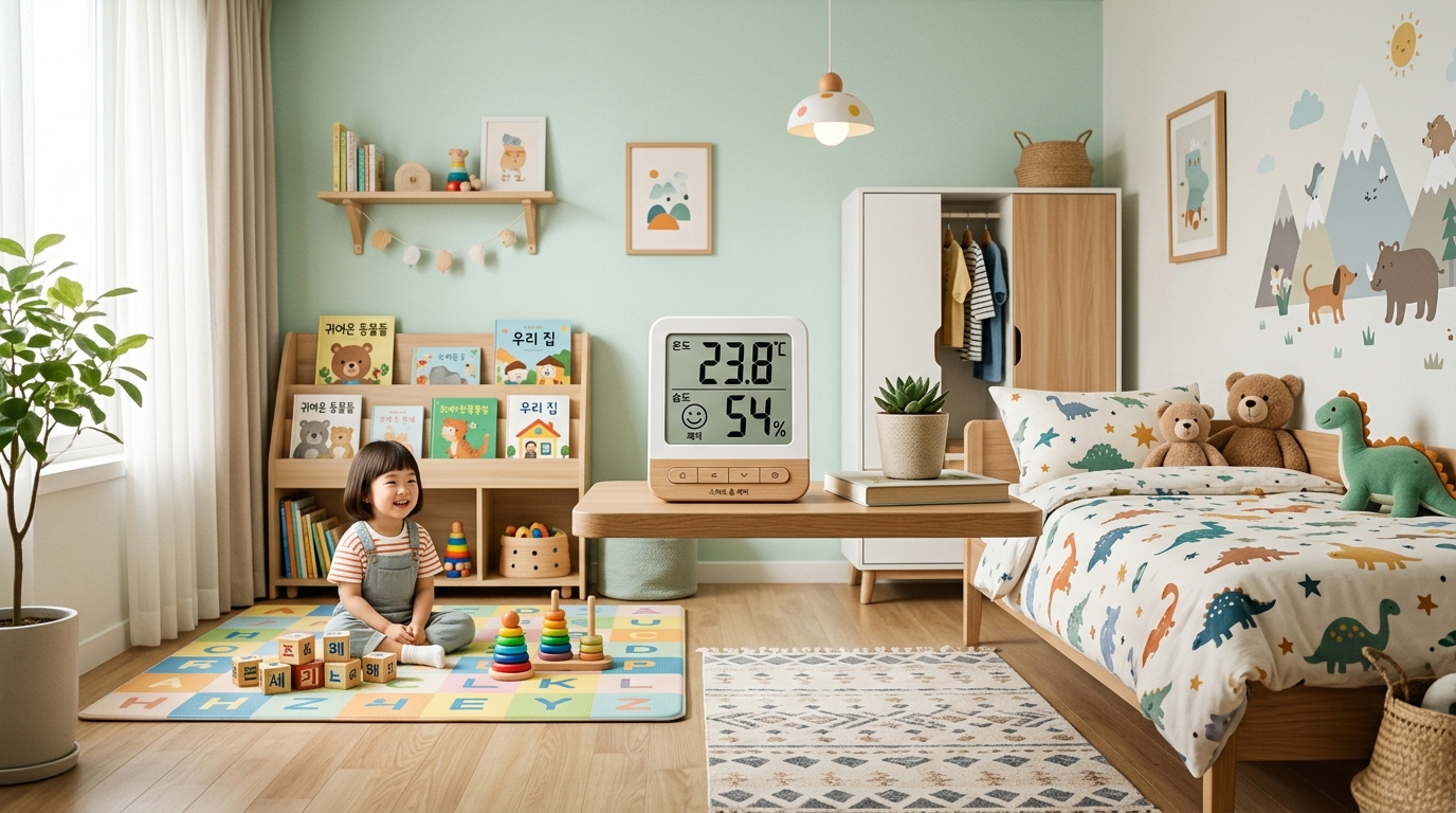 특히 가습기 자체의 습도 센서는 기기 주변의 습도만 측정하기 때문에 실제 아이가 숨 쉬는 위치의 습도와는 큰 차이가 날 수 있습니다. 저는 거실과 안방에 각각 다른 브랜드의 온습도계를 두고 교차 체크를 하는데, 확실히 머리맡 습도를 기준으로 관리할 때 아이의 아침 코막힘이 눈에 띄게 줄어들더라고요.