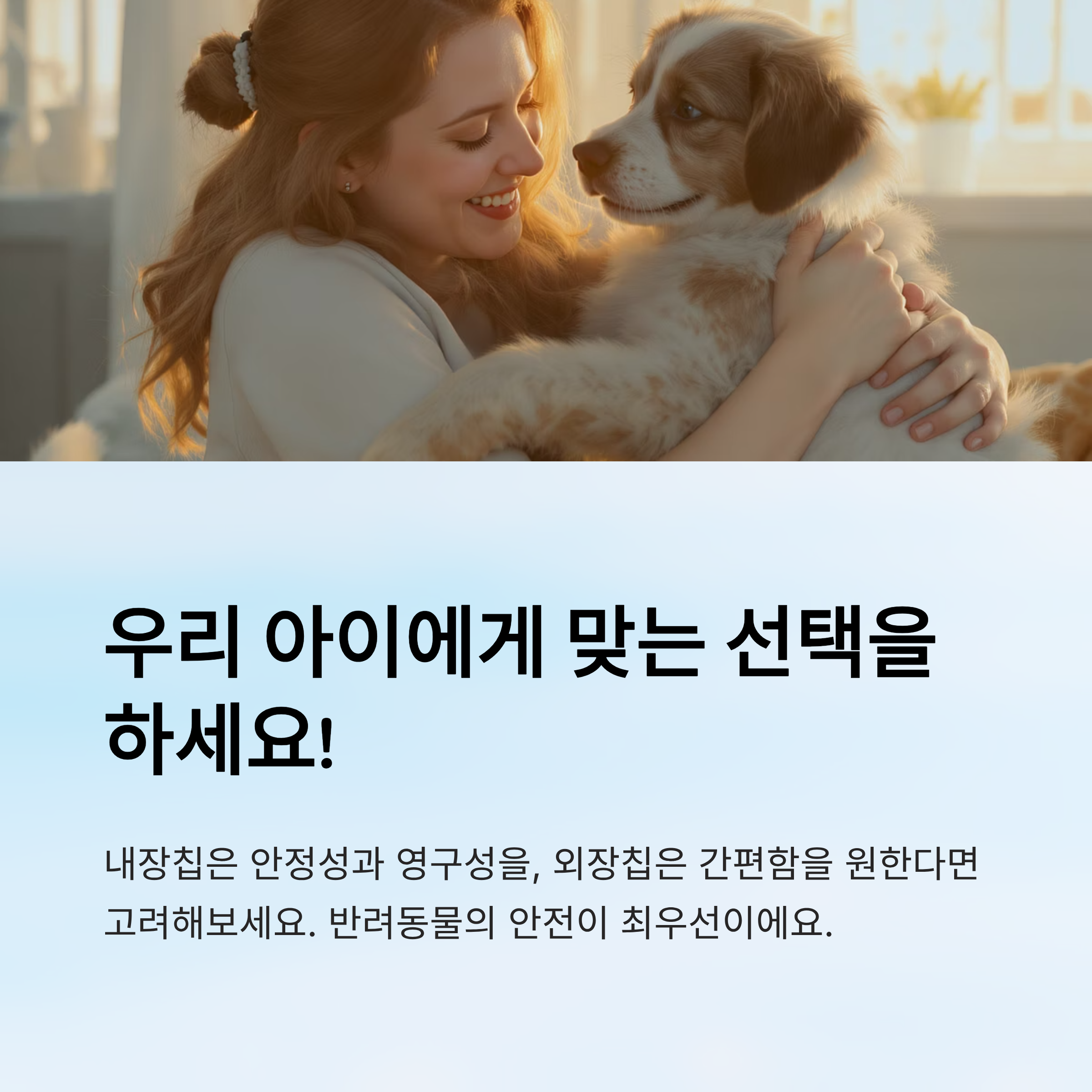 외장칩은 특히 **실내 생활이 많은 반려동물**이나, 시술이 어려운 경우에 좋은 대안이에요. 다만, 실외 활동이 잦거나 산책 중 목줄을 자주 바꾸는 반려동물은 분실 가능성을 고려해야 해요.