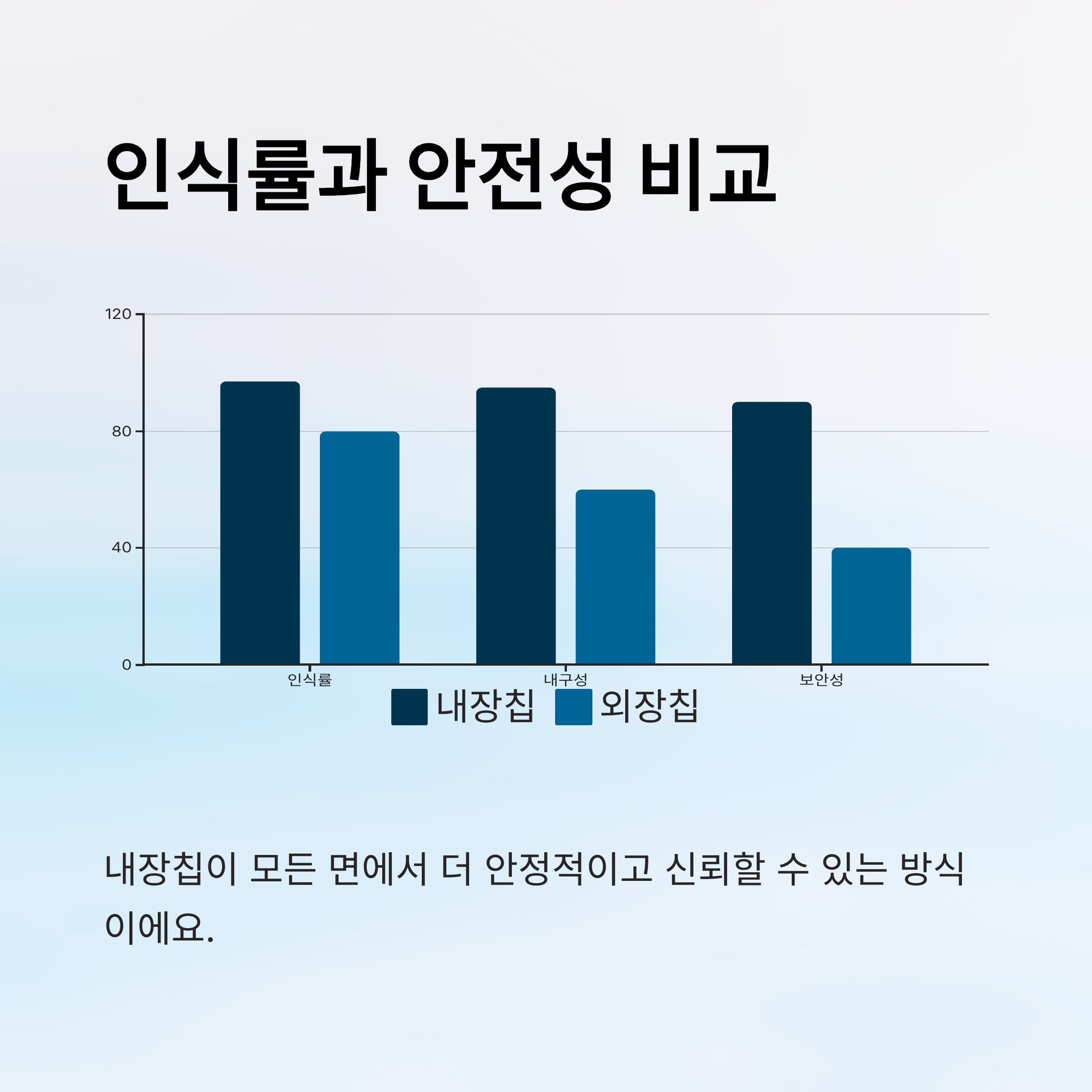 이제 내장칩과 외장칩의 등록 과정과 비용까지 알게 되었어요! 다음 박스에서는 가장 핵심이 되는 ‘인식률’과 ‘안전성’을 기준으로 두 방식의 실효성을 비교해볼게요. 🔍
