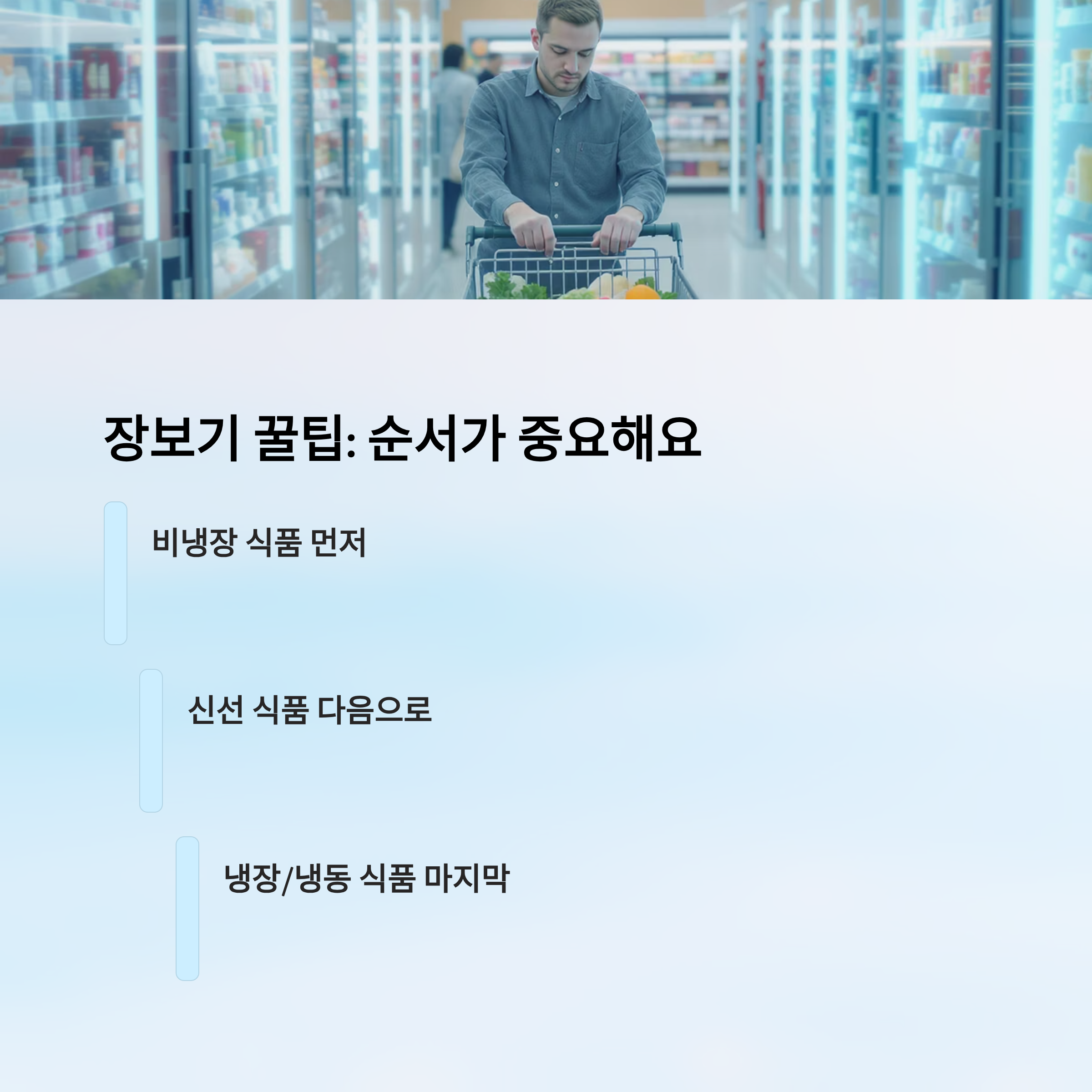 냉장식품은 상온에 노출되는 시간이 길어질수록 신선도가 급격히 떨어지기 때문입니다. 장보는 시간을 1시간 이내로 줄이고, 냉기가 잘 유지되도록 마지막에 구매하는 것이 좋습니다.