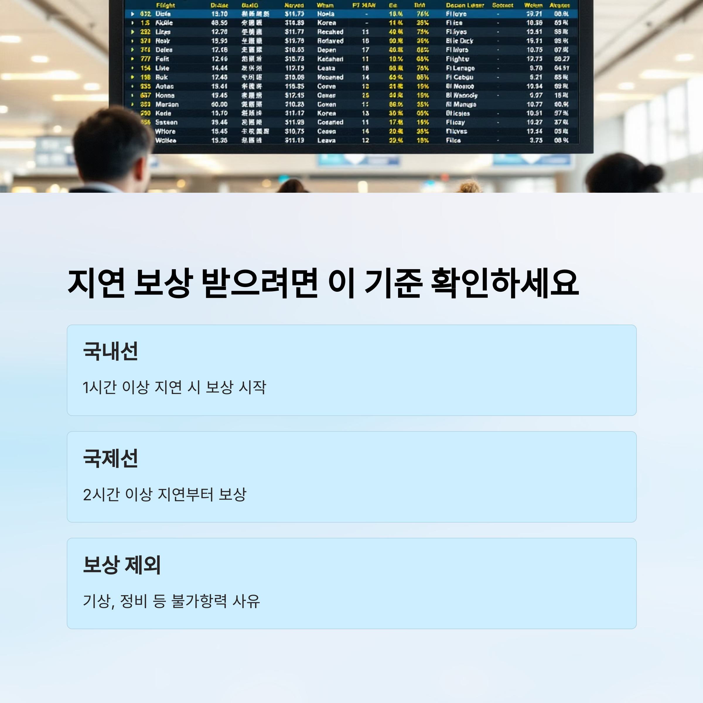 자주 발생하는 질문 중 하나가 ‘얼마 이상 지연돼야 보상되나요?’인데, 국내선은 2시간, 국제선은 4시간이 일반적인 기준이에요. 하지만 보상은 무조건 발생하는 게 아니라, 항공사 책임이 있을 때만 해당된다는 점 기억해두세요.