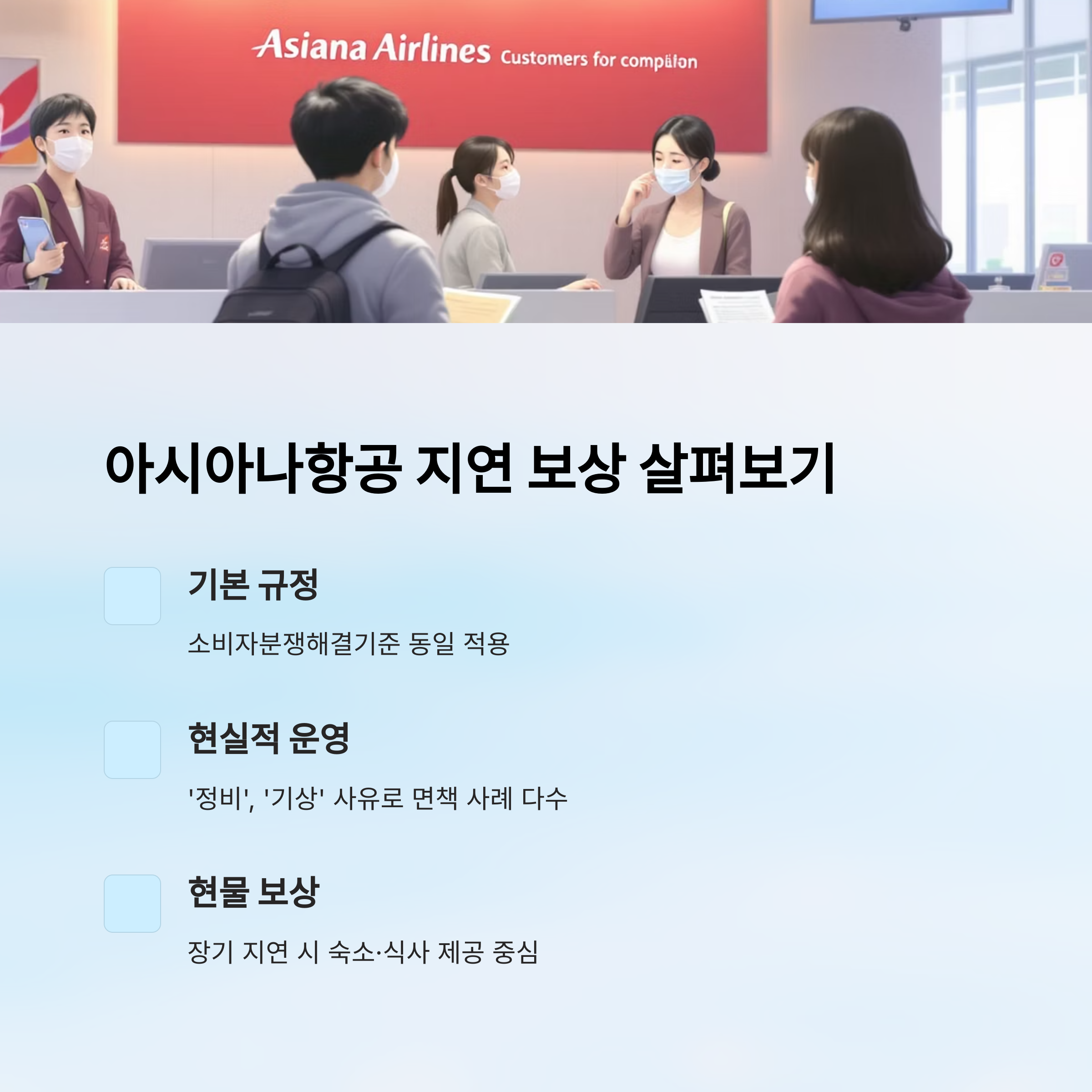 아시아나항공은 고객 중심 서비스로 유명한 만큼 지연 보상도 승객 입장에서 꼼꼼하게 제공하려 노력해요. 보상 기준은 국토교통부의 가이드라인을 따르면서, 자체적인 지연 매뉴얼도 함께 적용하고 있어요. 특히 지연 시 안내와 대응 속도에서 정평이 나 있어요.