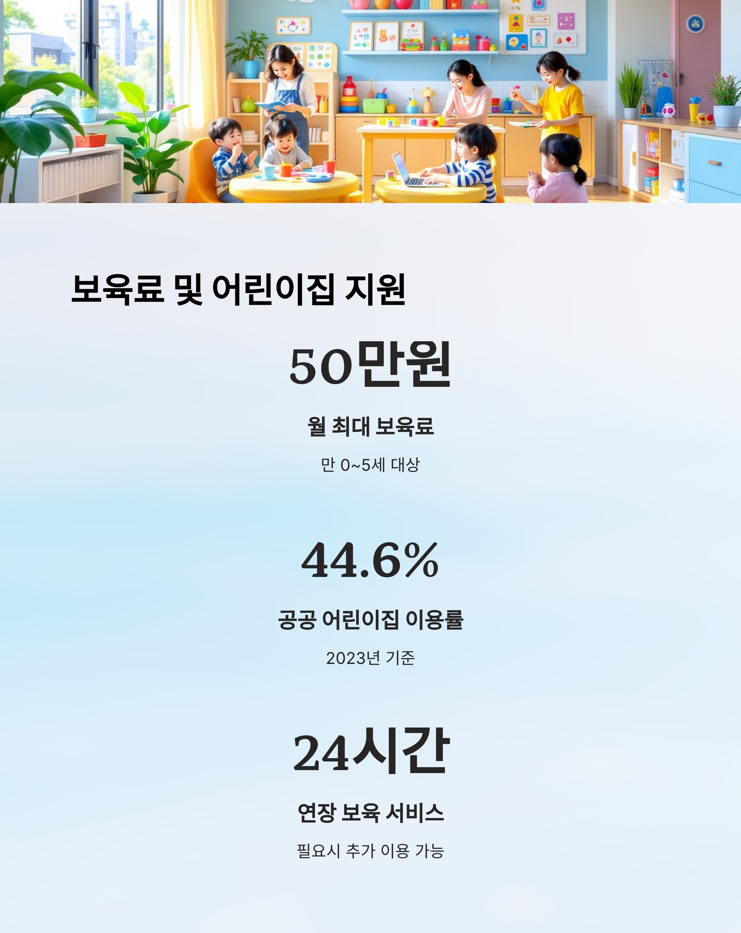 | 0~2세 | 보육료 전액 | 약 51만~57만 원/월 |