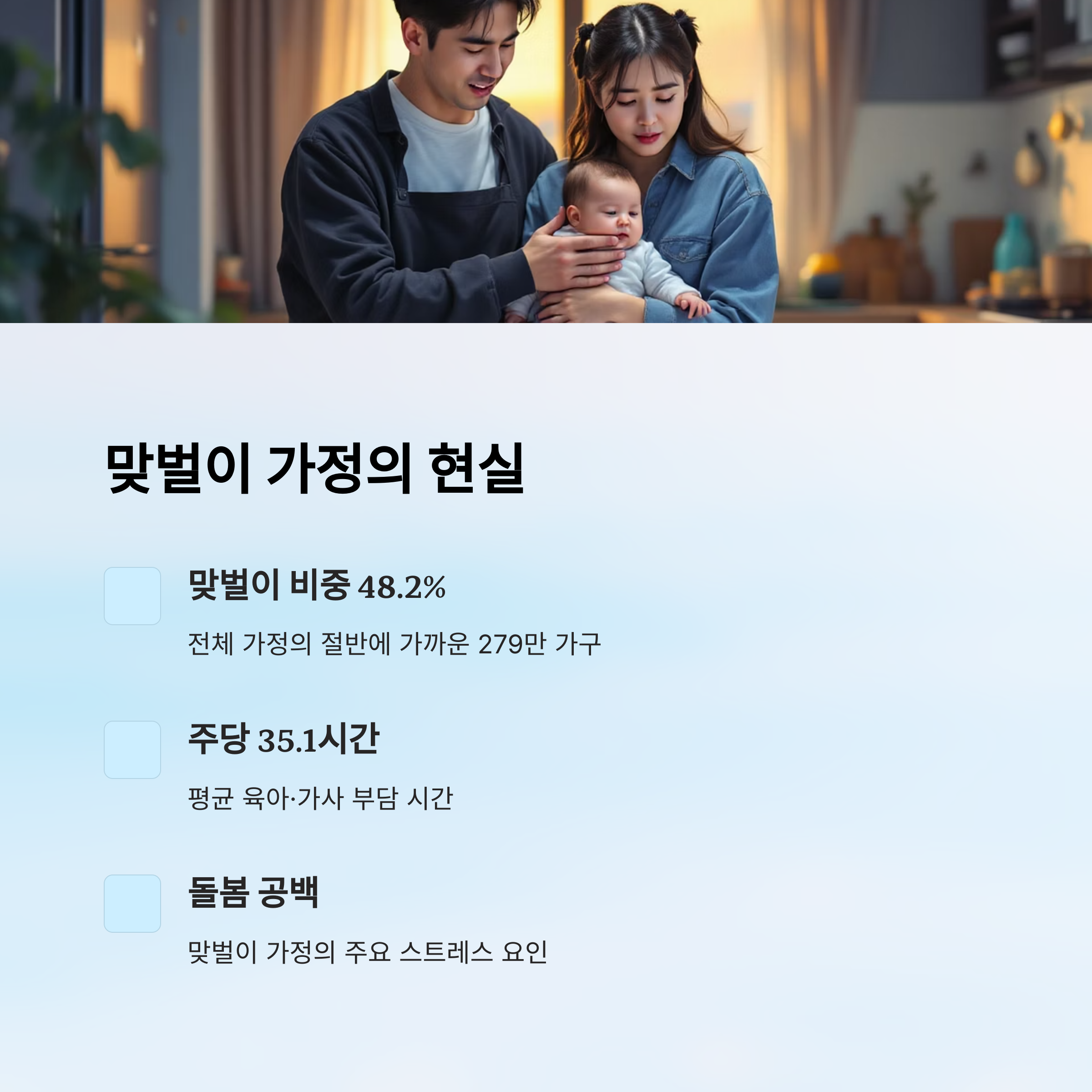 맞벌이 부모의 가장 큰 고충은 '시간'과 '정보 부족'이에요. 이용할 수 있는 복지 제도가 많아도 잘 모르거나, 너무 복잡해서 포기하는 경우도 많아요.