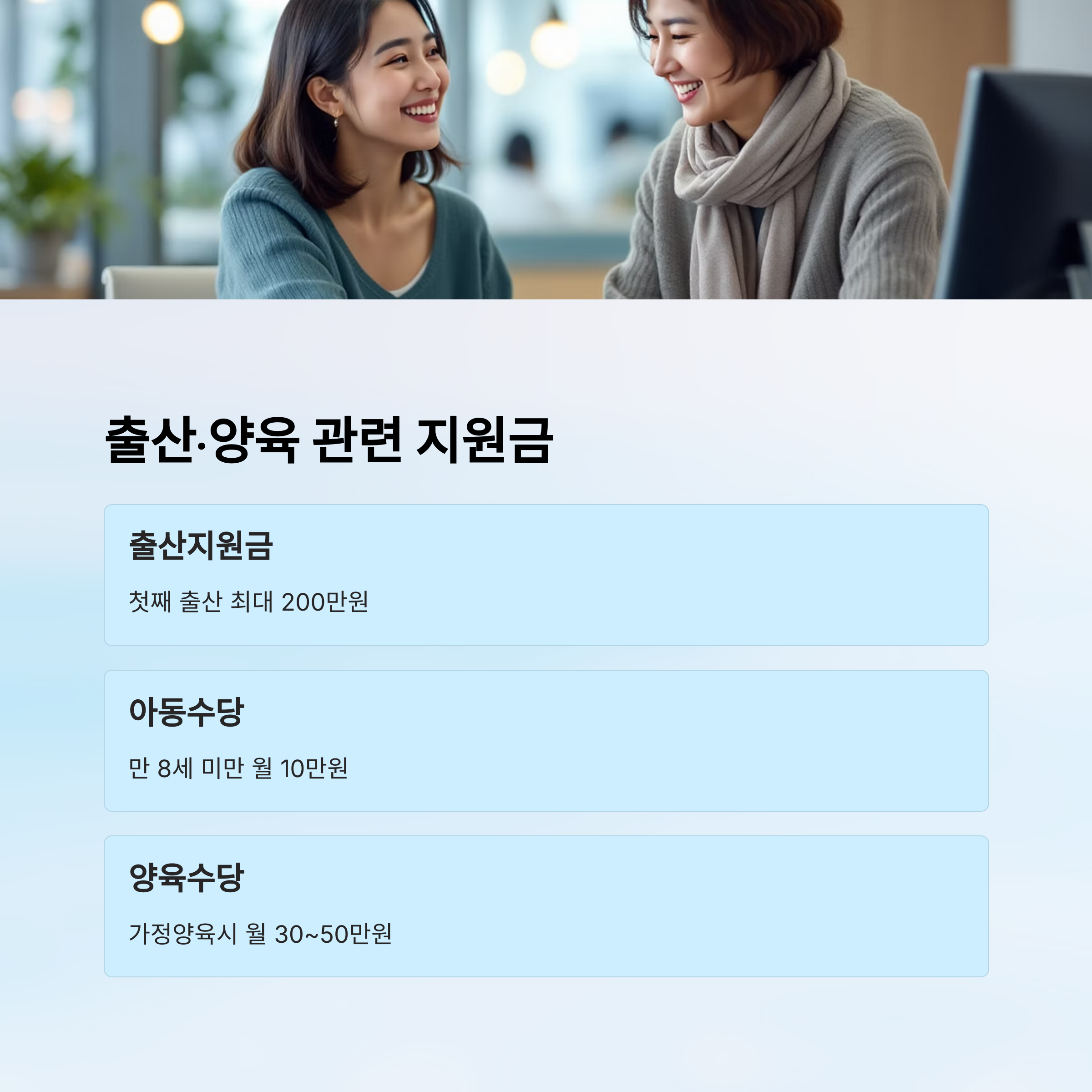 | 출산지원금 | 지역별 50만~1000만 원 | 지자체별 상이 |