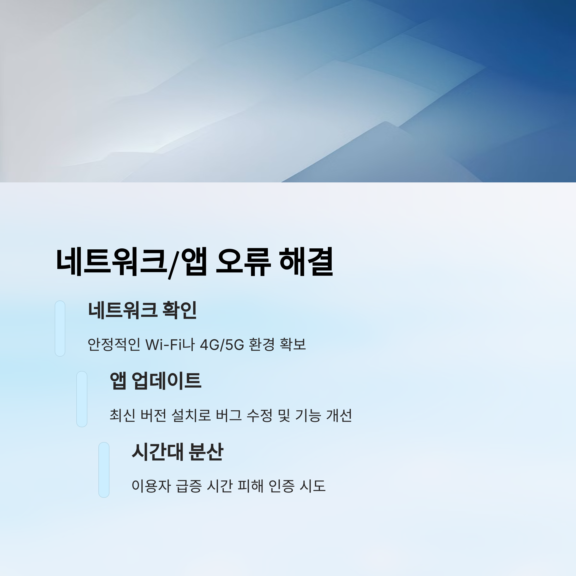 🌐 5. 네트워크 오류 인증 중 데이터 연결이 끊기면 중단되며, 와이파이 접속 문제도 자주 원인이 돼요.