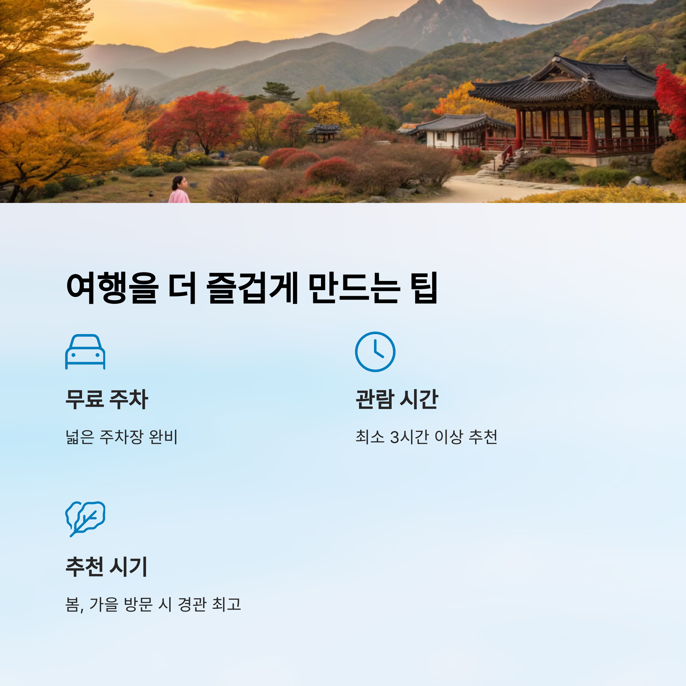 4. 평일 오전 시간대를 추천해요. 한적하고 여유롭게 둘러볼 수 있어요. 사람 적은 시간에 가면 진짜 자연의 소리를 더 잘 느낄 수 있답니다.