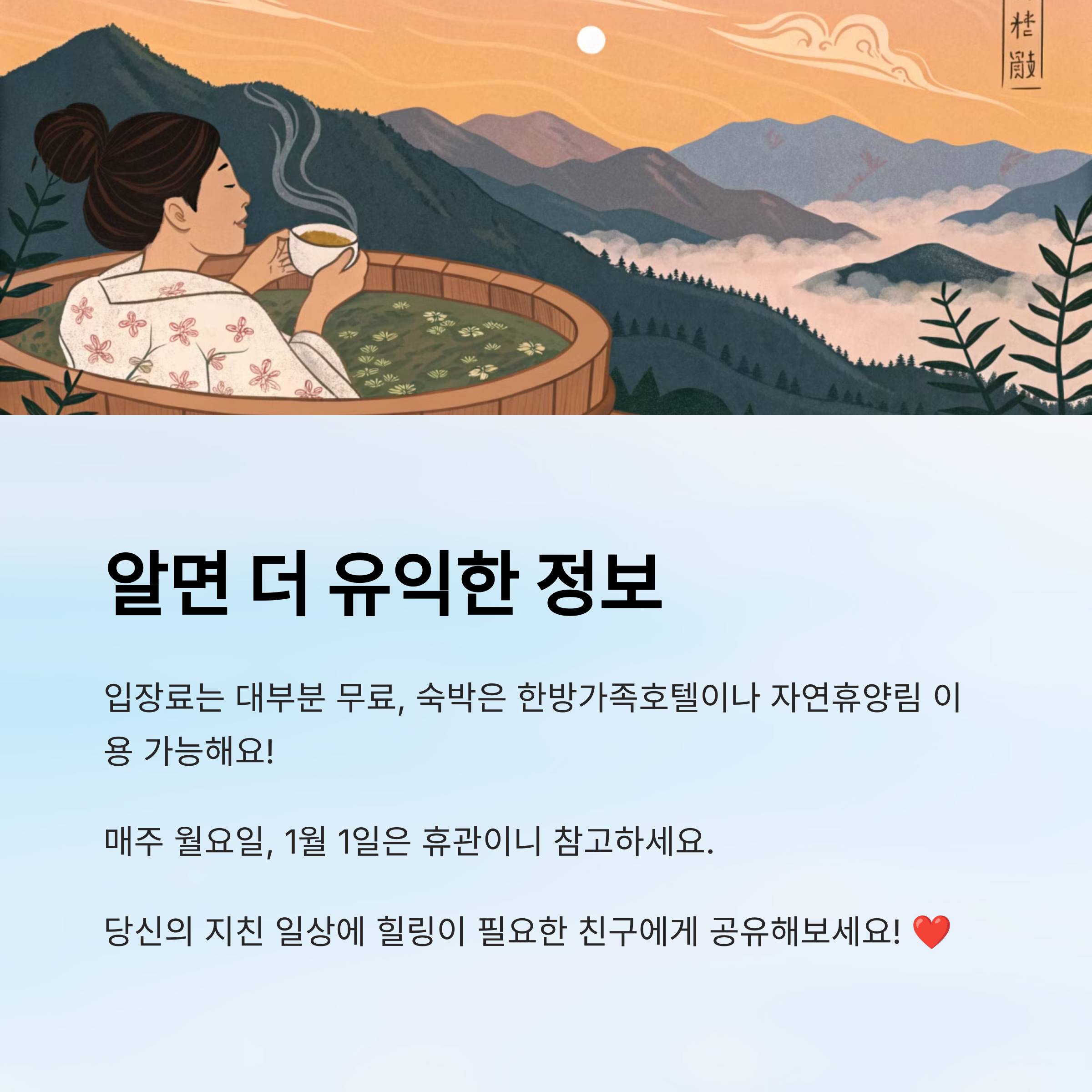 SNS에서도 "자연이 주는 위로가 이렇게 크다니", "약초차 마시면서 스스로를 돌보는 시간, 너무 소중했다"는 글들을 쉽게 찾아볼 수 있어요. 힐링이 필요한 모든 사람에게 추천하고 싶어요.🫶