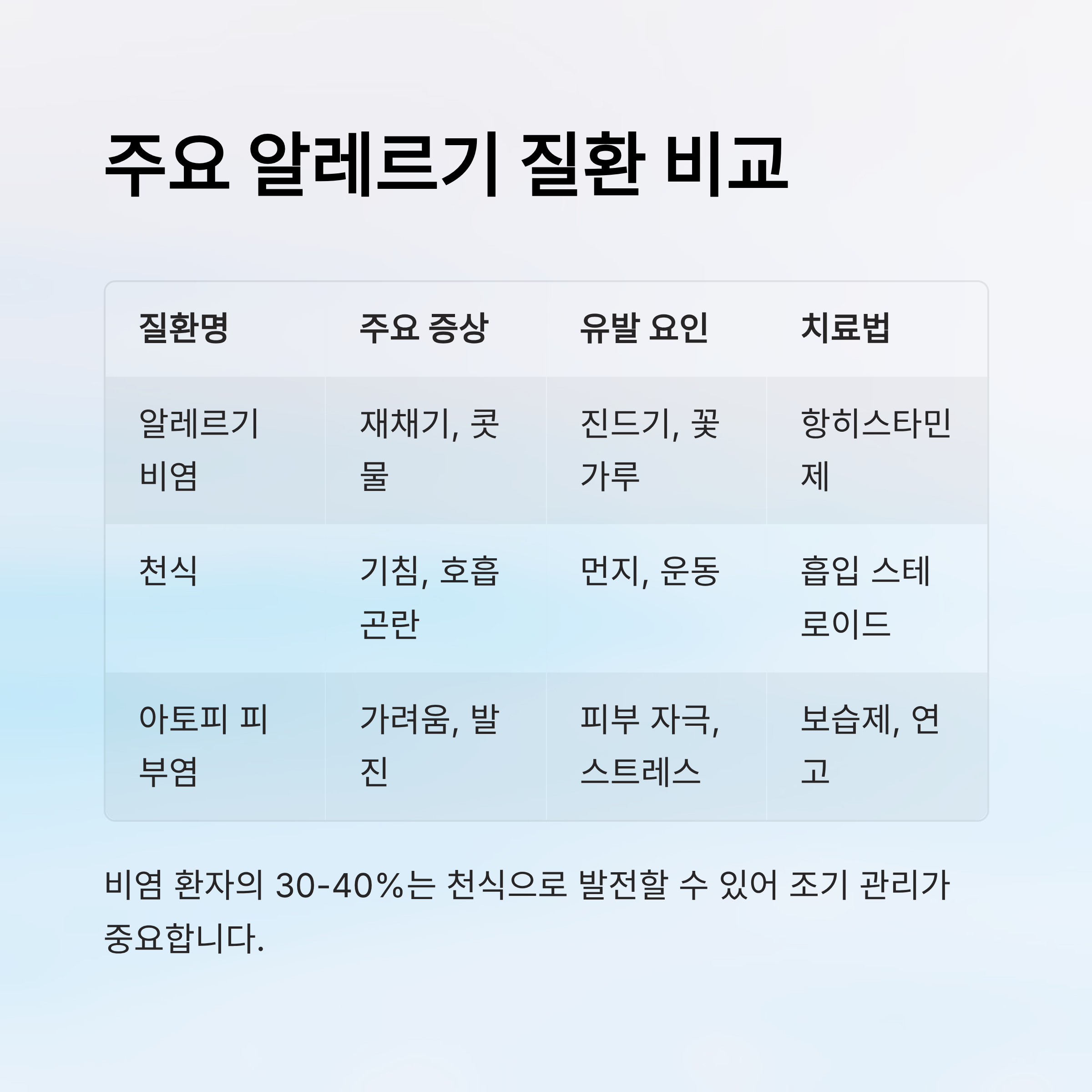 📊 청소년 주요 알레르기 질환 비교표