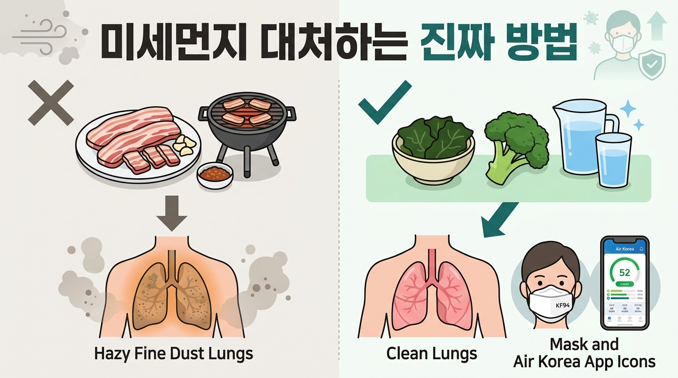 여러분, 요즘 아침에 일어나서 창밖을 볼 때 가장 먼저 확인하는 게 무엇인가요? 아마 "오늘 미세먼지 농도는 어떨까?" 하는 걱정이실 거예요. 😷 공기가 뿌연 날이면 목이 칼칼하고 눈이 따끔거려서 삼겹살 한 점 구워 먹으며 '기름으로 목 좀 씻어내야지'라고 생각하셨던 분들 많으시죠? 저도 예전엔 황사 소식만 들리면 정육점으로 달려가곤 했답니다. 하지만 과연 삼겹살이 우리 몸의 미세먼지를 정말 씻어내 줄까요? 오늘은 2026년 최신 팩트체크와 함께, 우리의 소중한 기관지를 지켜줄 진짜 방법들을 아주 상세히 알려드릴게요! 😊