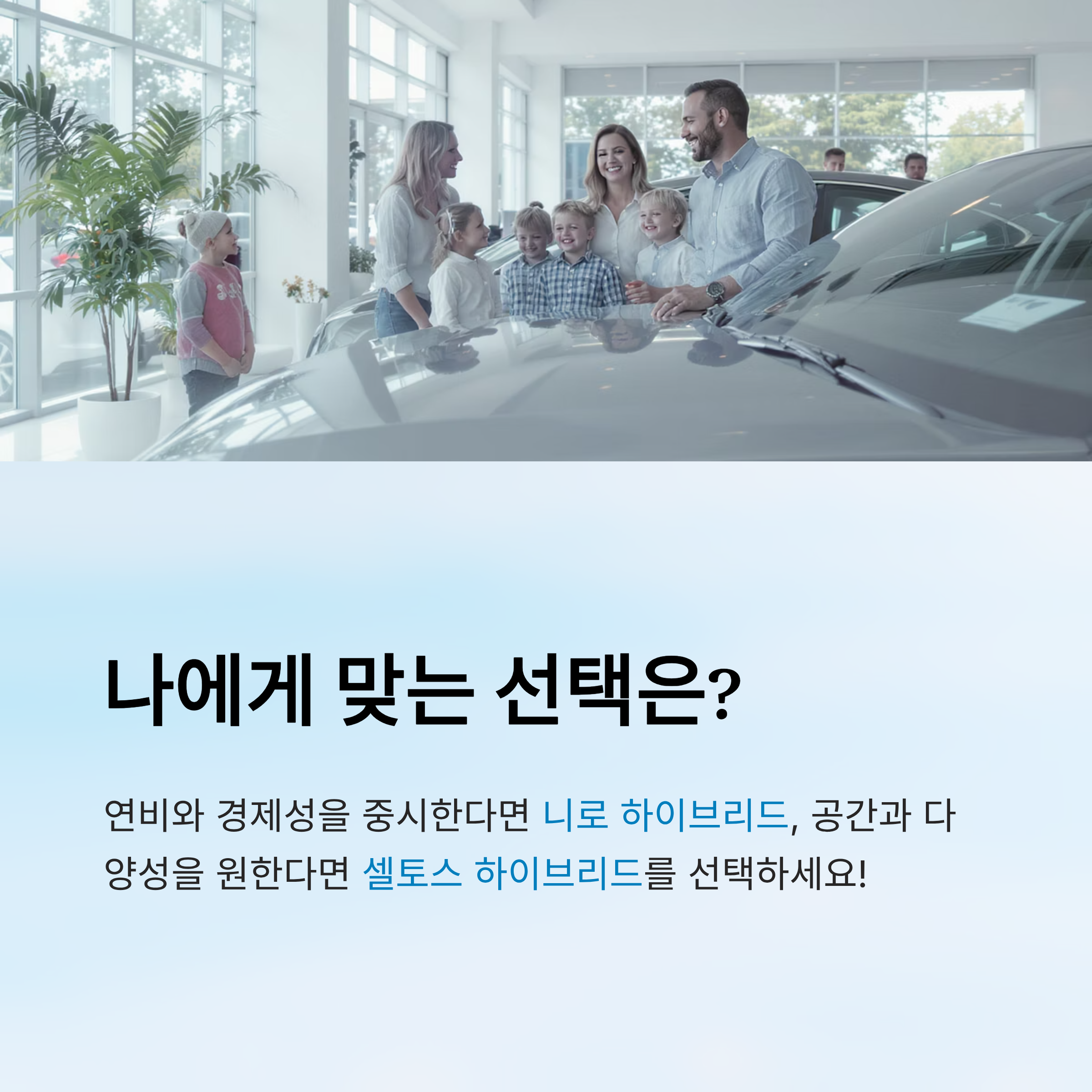 👉 니로 하이브리드가 딱이에요! 연비도 좋고, 조용하고 승차감이 편안해서 도심 주행에 최적화되어 있어요. 연비 효율성을 가장 중요하게 생각한다면 니로를 추천해요.