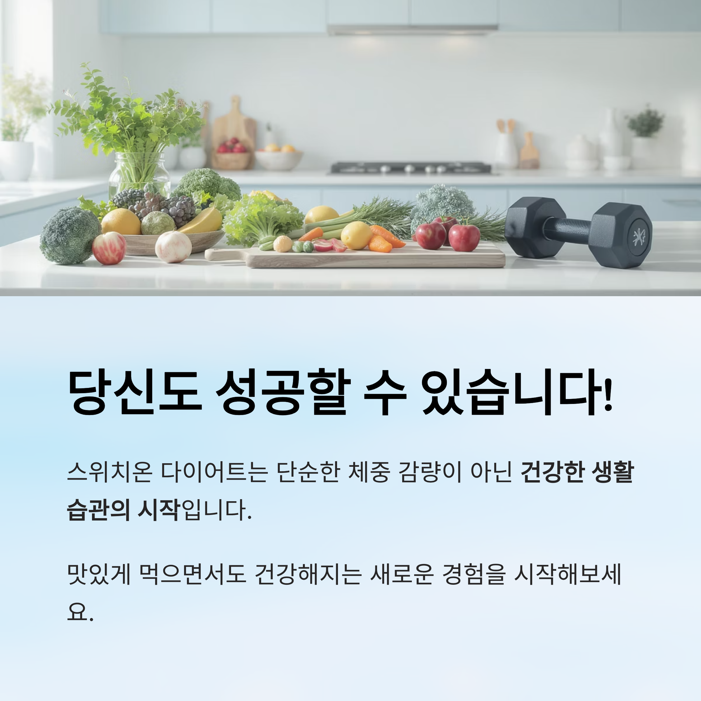 정리하면, 스위치온 다이어트는 허용 식품으로 풍부한 맛을 즐기면서도 체지방을 줄일 수 있게 돼요. 제한 식품은 의지로 억제하는 것이 아니라 자연스럽게 멀어지게 만들죠. 덕분에 장기적으로 유지가 가능한 식습관으로 발전해요. 🌱