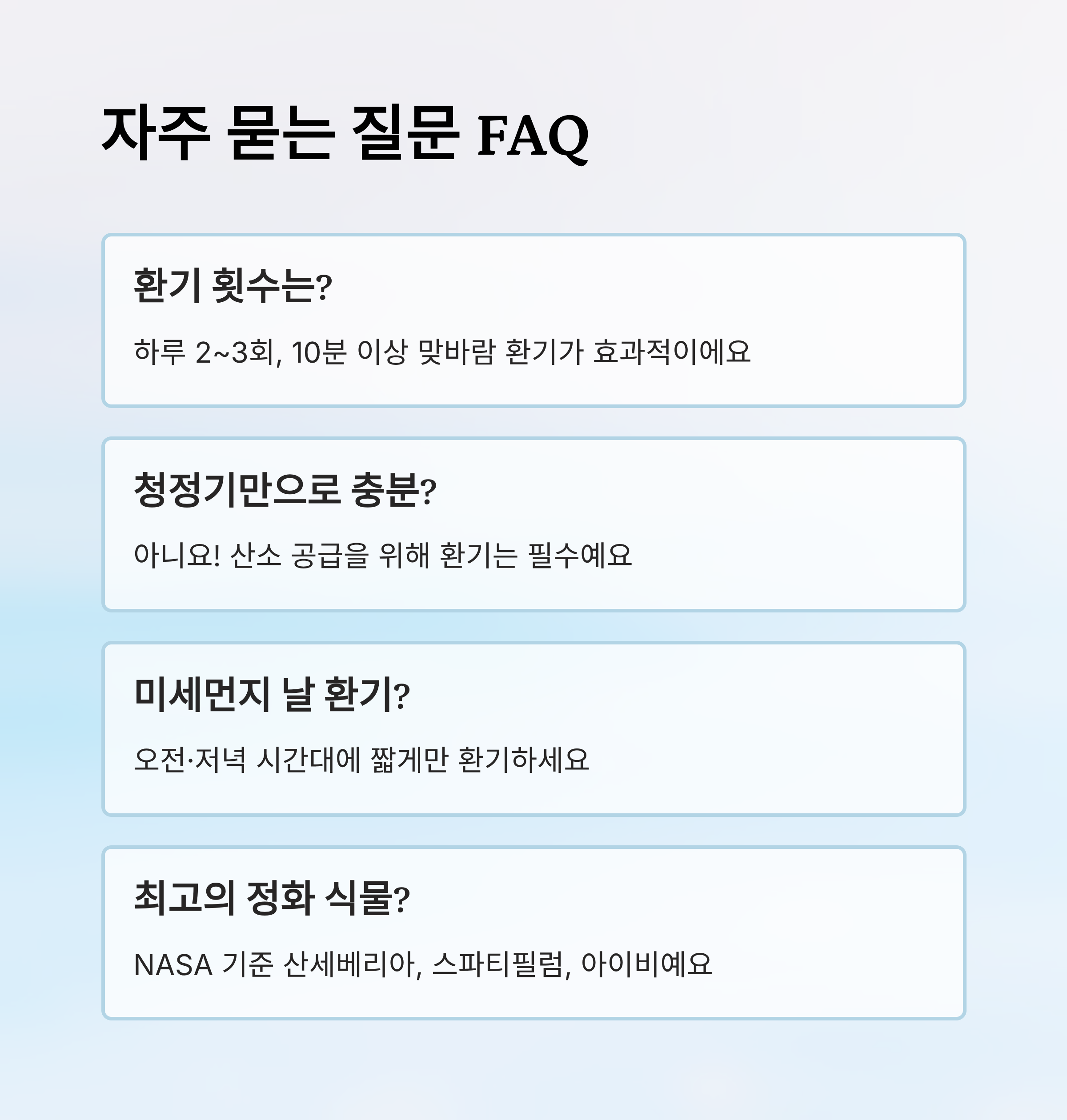 누구나 쉽게 실천할 수 있는 작은 변화들이 모이면, 실내 공기의 질은 확실히 달라진다는 걸 느낄 수 있어요! 🌬️