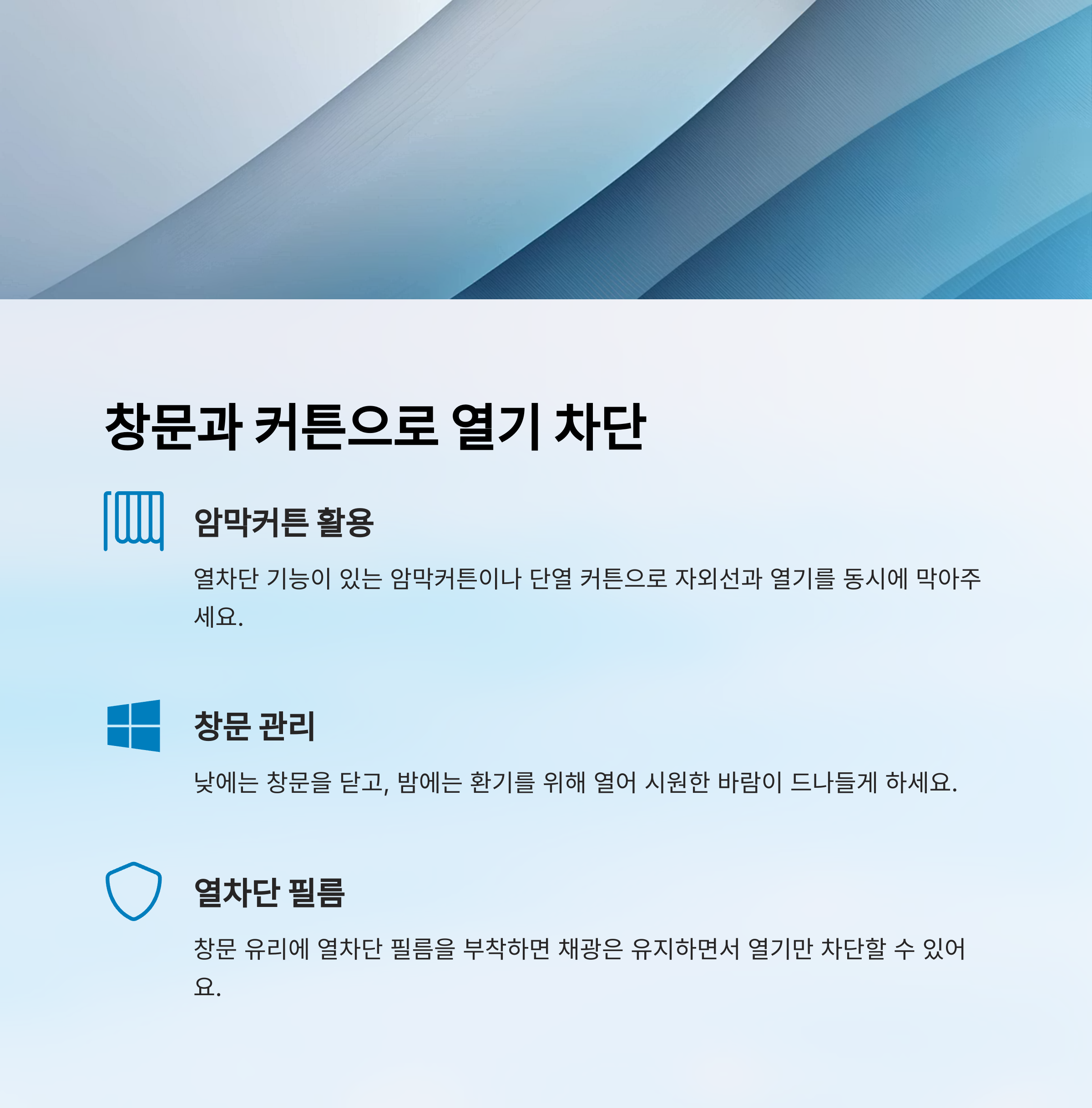 햇빛 차단은 단순히 커튼만이 아니라, 전체적인 차단 구조와 순환 흐름을 고려해야 해요. 바람길을 이해하고 적절한 시간에 열고 닫는 리듬을 만들면, 에어컨 없이도 여름을 견디는 데 큰 도움이 된답니다 🌞