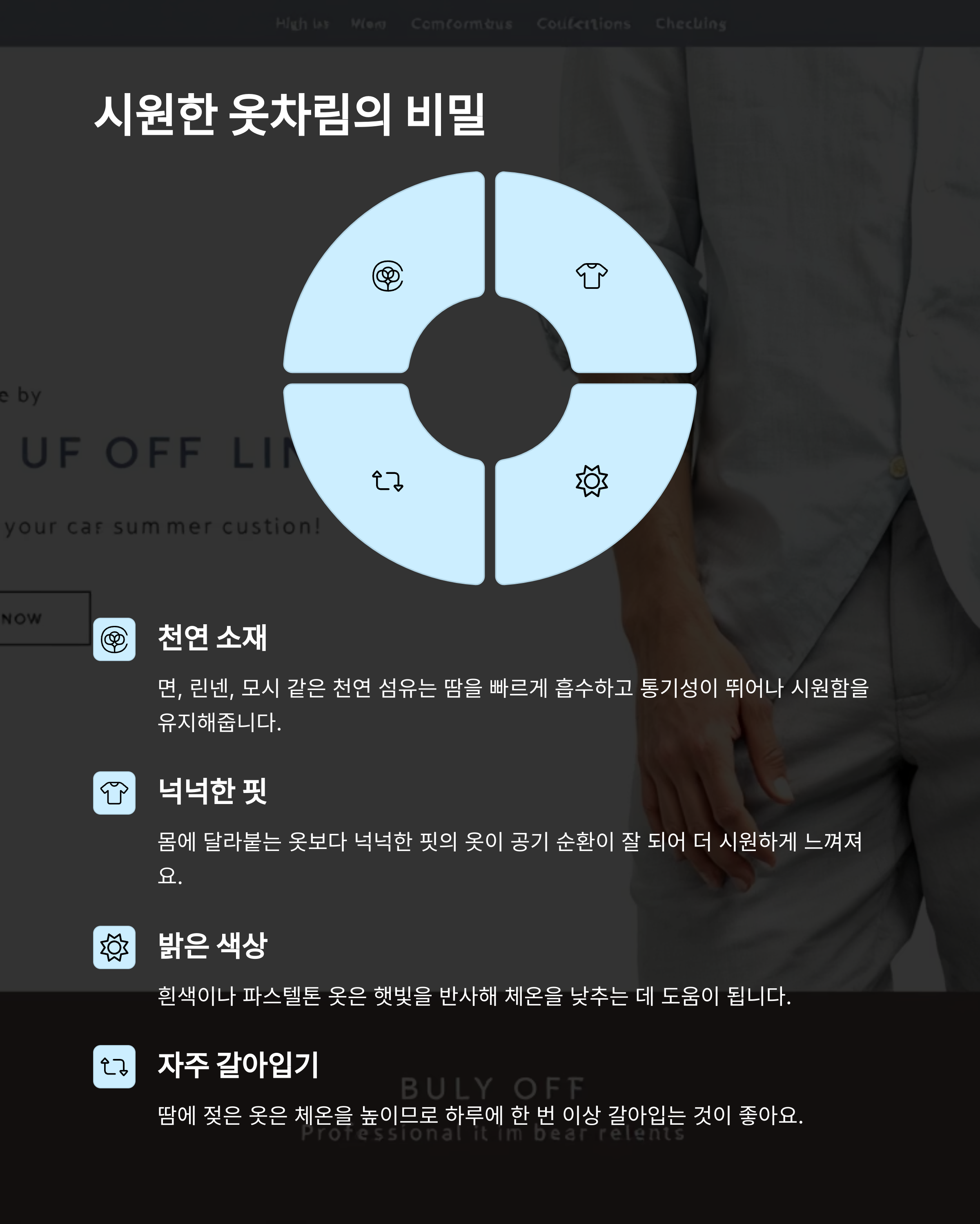 옷차림만 제대로 신경 써도 여름날 에어컨 없이도 충분히 버틸 수 있어요. 하루 종일 입는 옷이니 만큼, 기능성과 쾌적함을 동시에 챙기는 것이 중요해요 👗