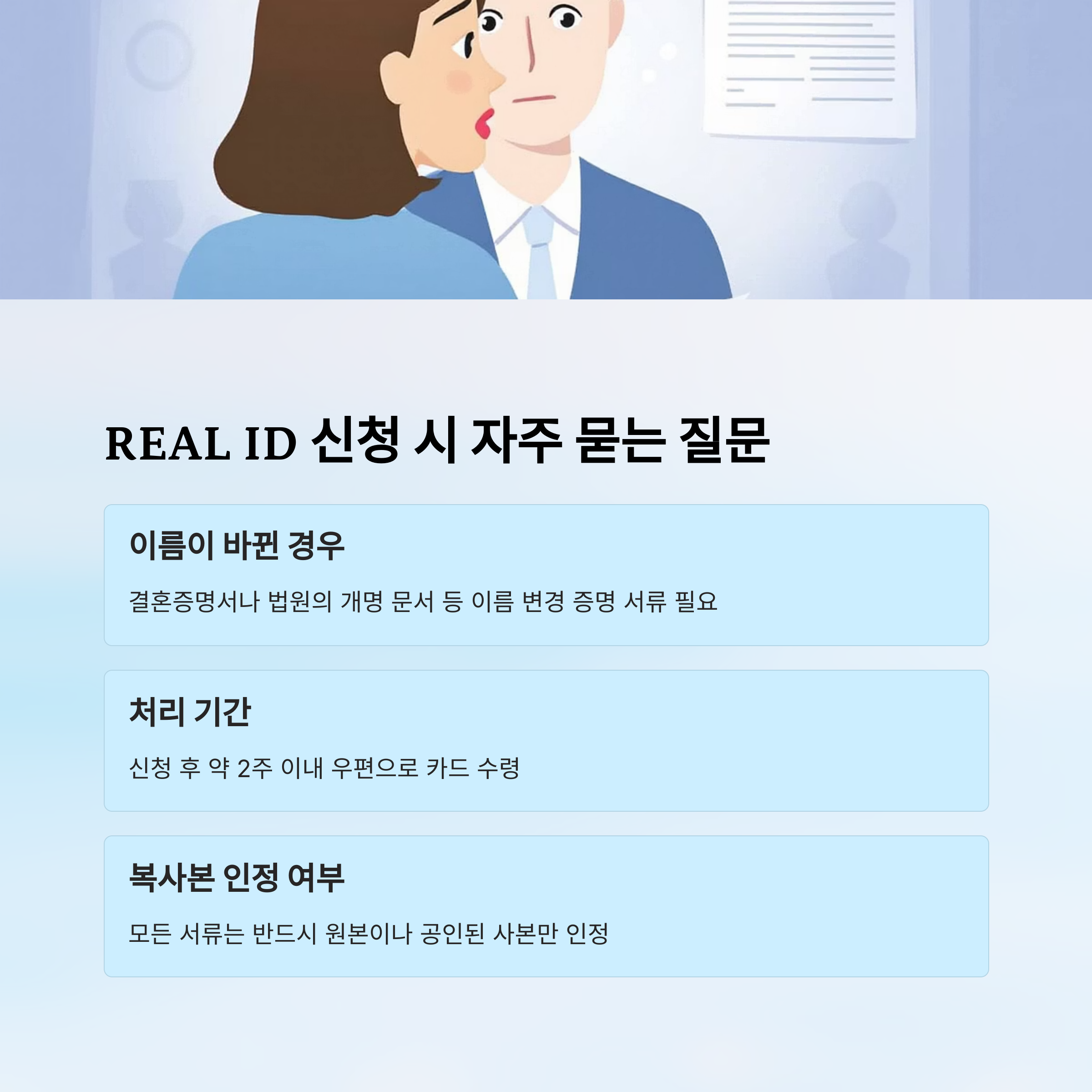 REAL ID는 불편함보다는 안전과 신뢰를 위한 조치예요. 조금 귀찮더라도 한번 발급받아두면 다양한 상황에서 걱정 없이 신분 확인이 가능하답니다.