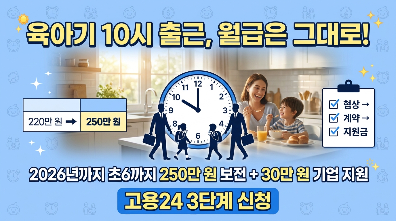 #육아기10시출근제, #육아기근로시간단축, #2026육아정책, #맞벌이부부지원, #워라밸장려금, #고용24신청방법, #초등학생단축근무, #육아지원금, #중소기업육아지원, #유연근무제, #10시출근월급, #임금보전단축근무, #아이키우기좋은나라, #부모급여인상, #육아휴직대체인력