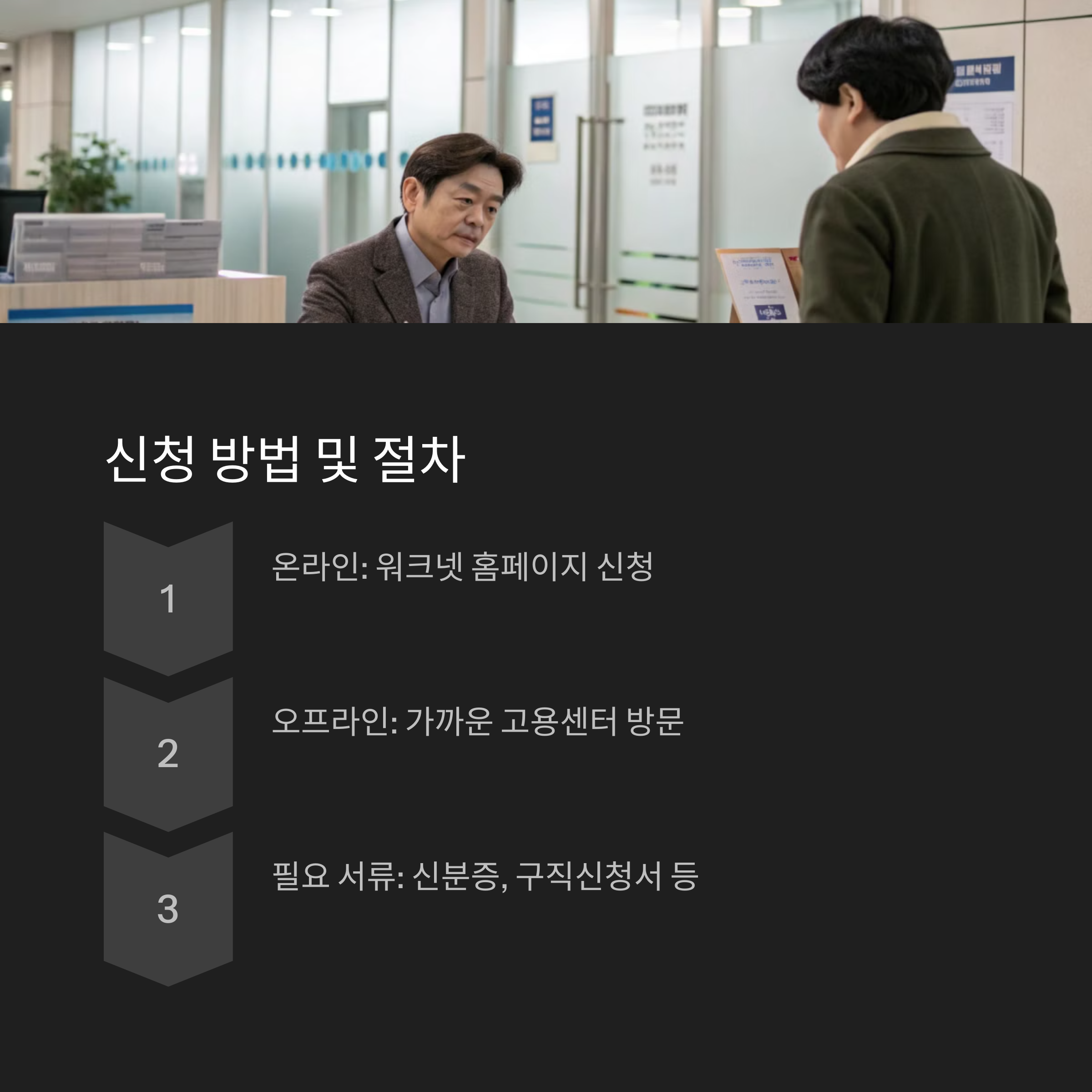 - 신청 시 필요한 서류(신분증, 실업 상태 증명서 등)를 미리 준비해 두세요.