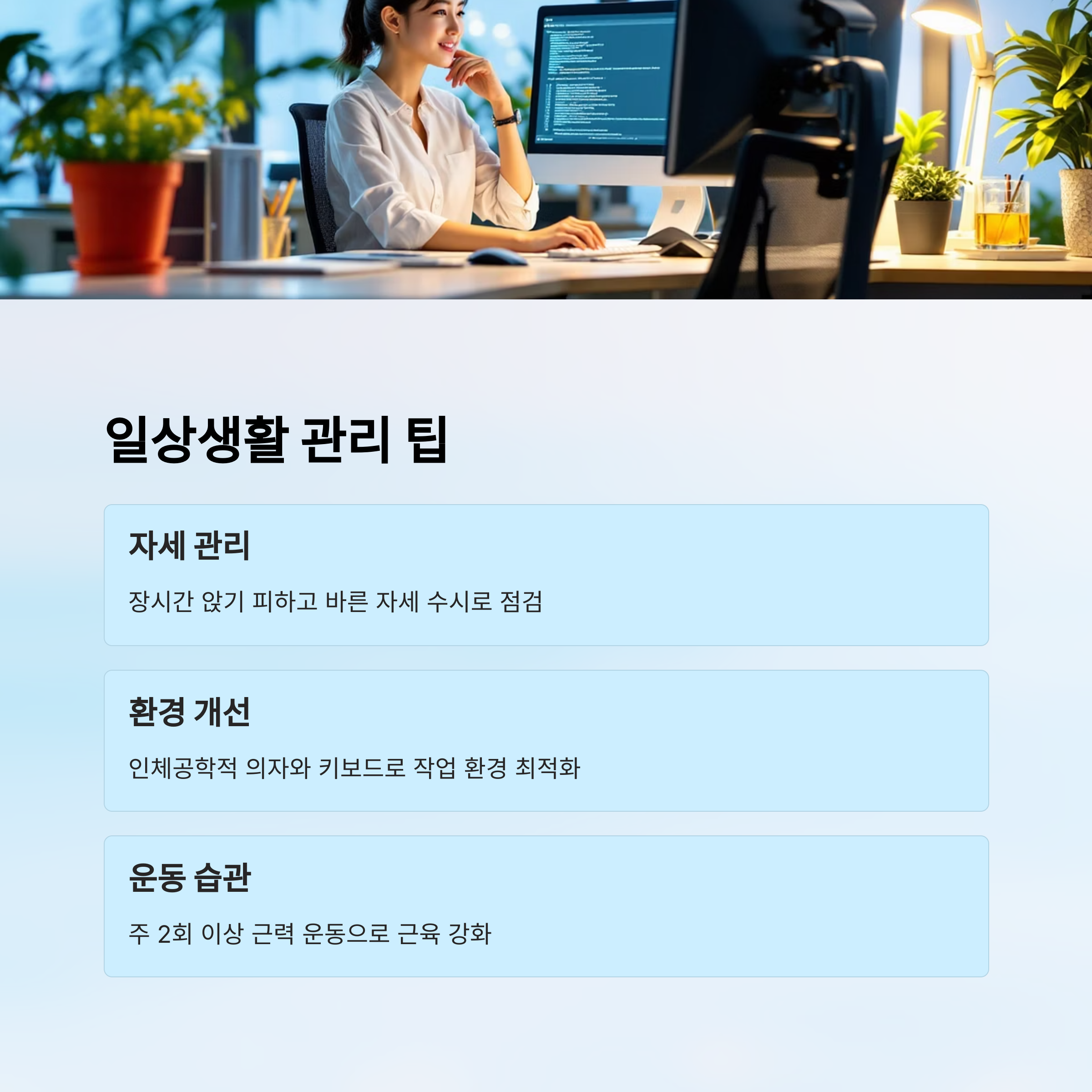 이런 루틴은 특히 만성 통증이 있는 분들에게 효과적이에요. 이제 일상에서 실천 가능한 관리법도 알아보면 좋겠죠?