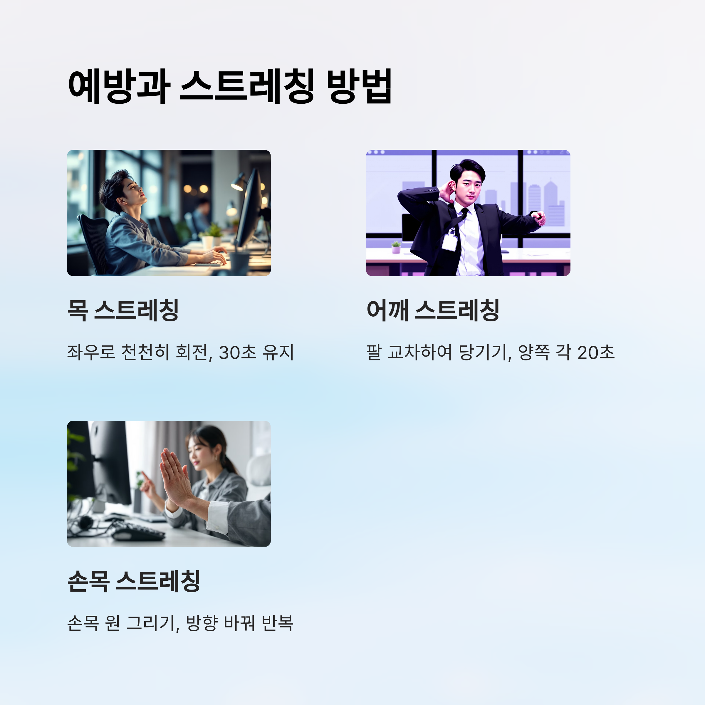 이 질환들은 초기에 자각하기 어려운 경우도 많아서, 꾸준한 스트레칭과 관리가 정말 중요해요.
