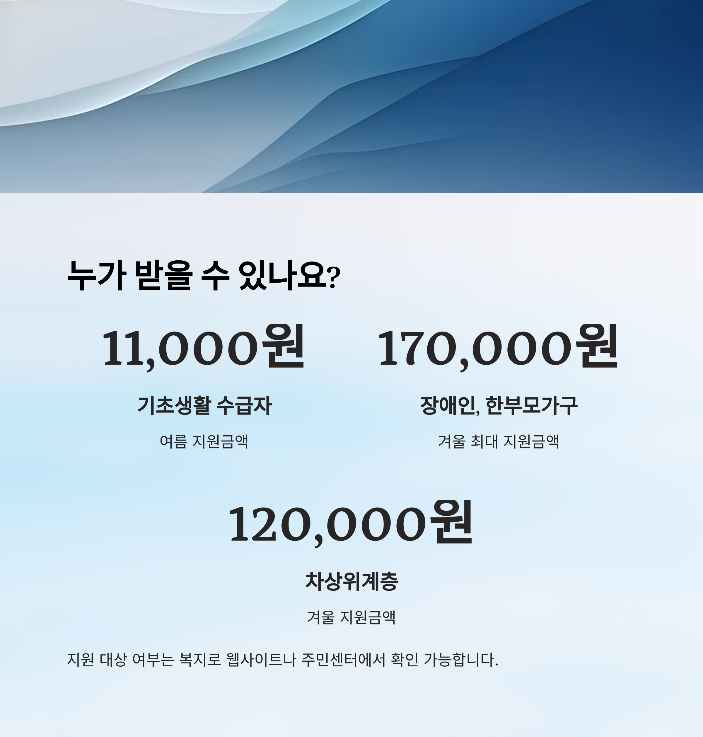 | 대상 가구 | 여름 지원 | 겨울 지원 |