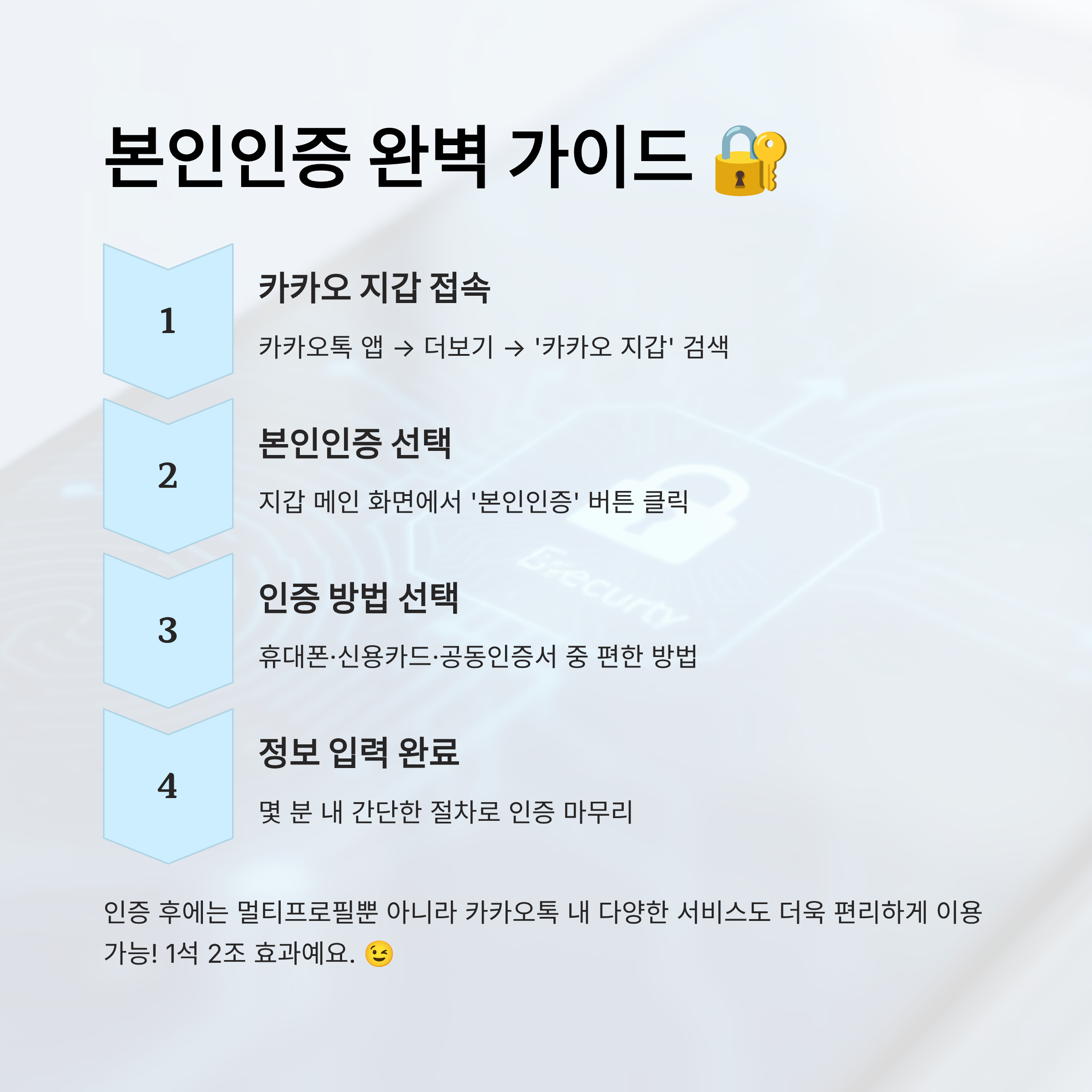 이 인증 시스템은 카카오가 사용자의 신뢰성과 안전을 보장하기 위해 준비한 보안 절차이기 때문에, 조금 번거롭더라도 꼭 필요해요. 인증 이후에는 카카오톡 내 다양한 서비스도 더욱 편리하게 이용할 수 있게 되니 1석 2조죠! 😉
