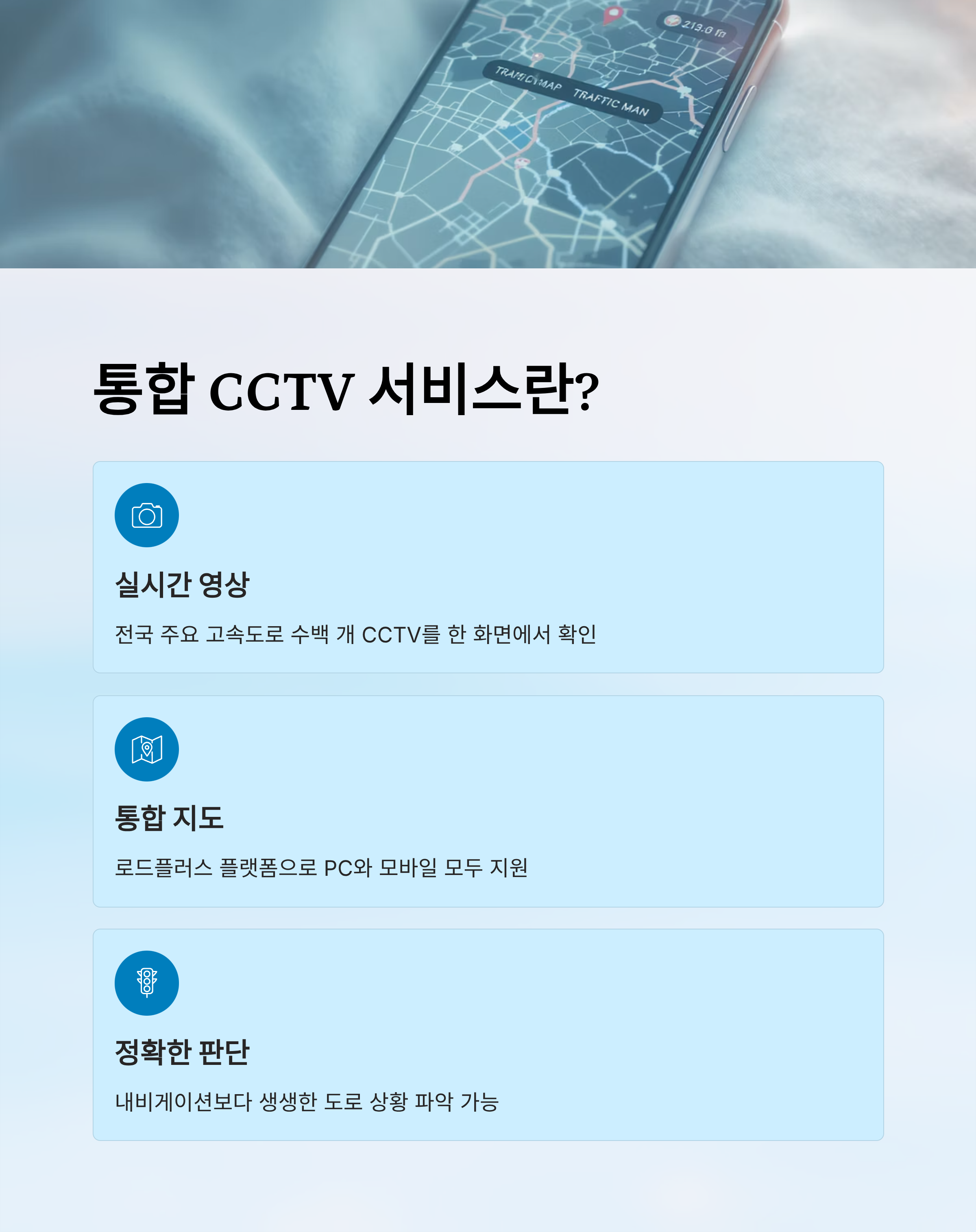 | 로드플러스 | 전국 고속도로 CCTV, 소통정보 | 지도 기반, 실시간 영상 | 웹사이트/모바일 |