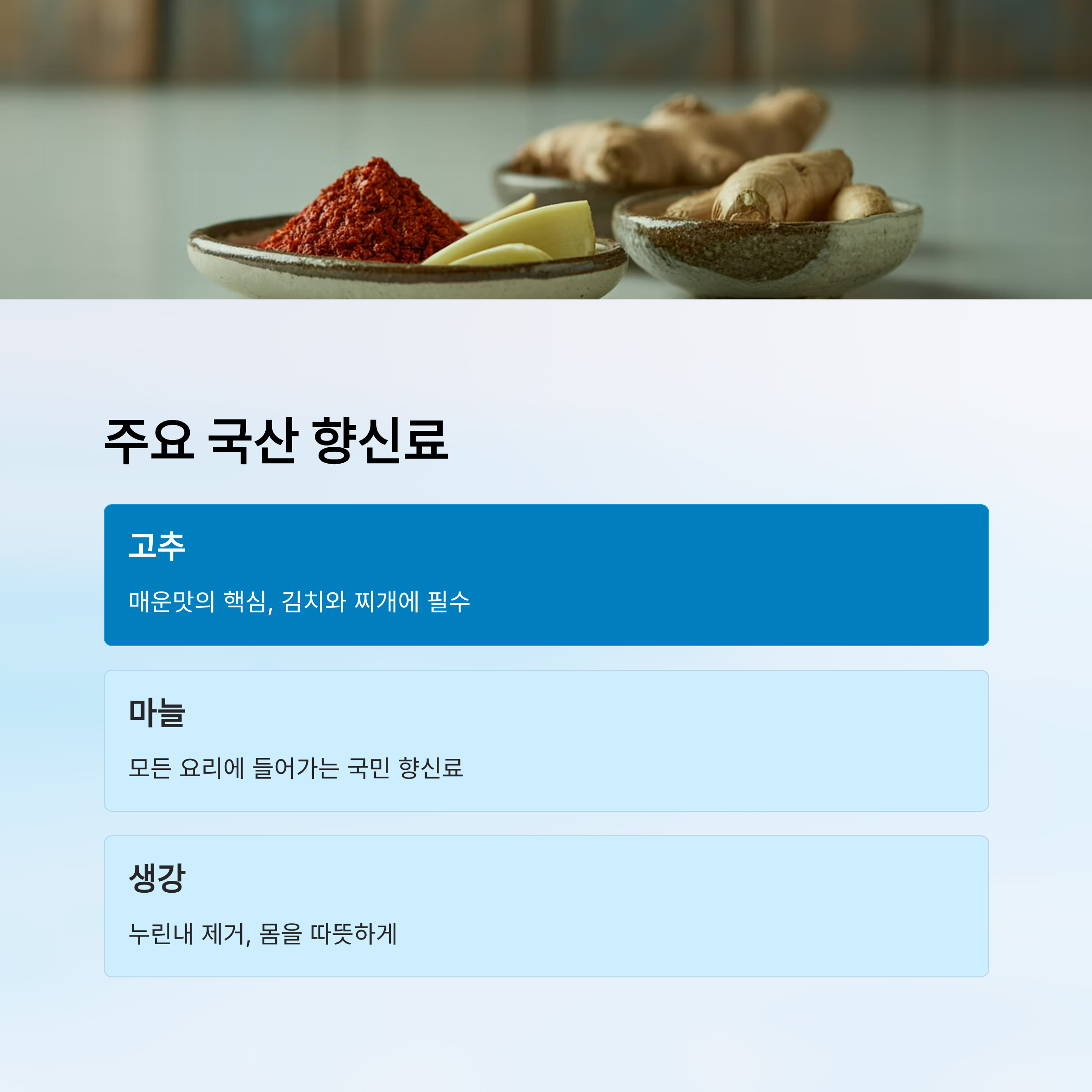 🌶️ 주요 국산 향신료 비교표