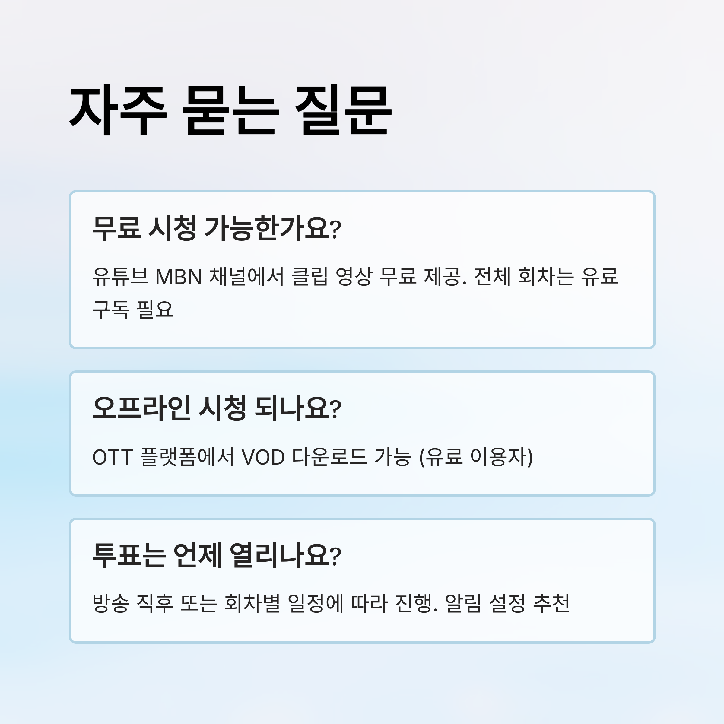 A4. 방송 직후 또는 회차별 일정에 따라 열리며, 알림 설정을 통해 투표 시작 시점에 바로 확인할 수 있어요.