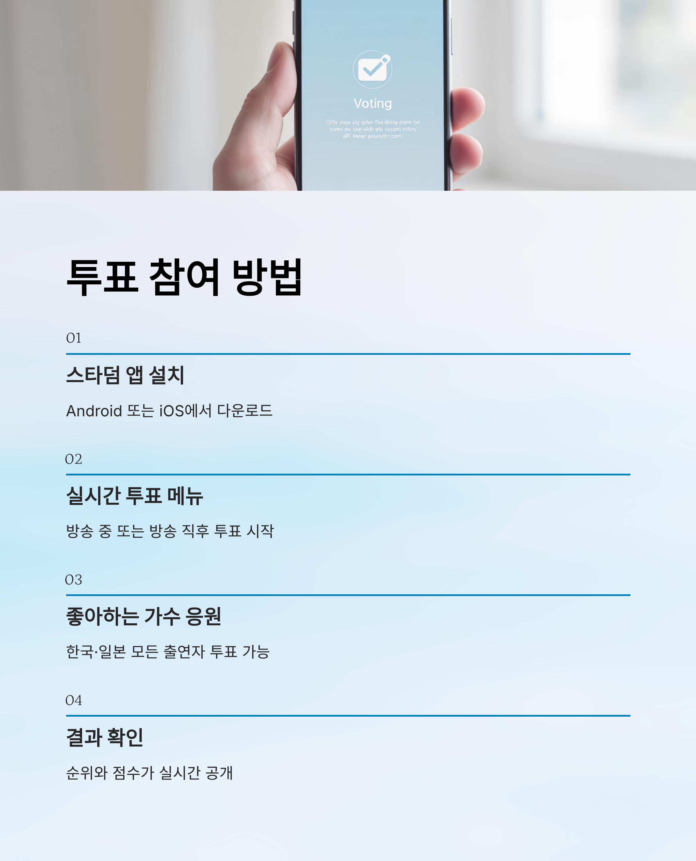 | SNS 및 커뮤니티 | 팬 투표 동향 실시간 공유 |