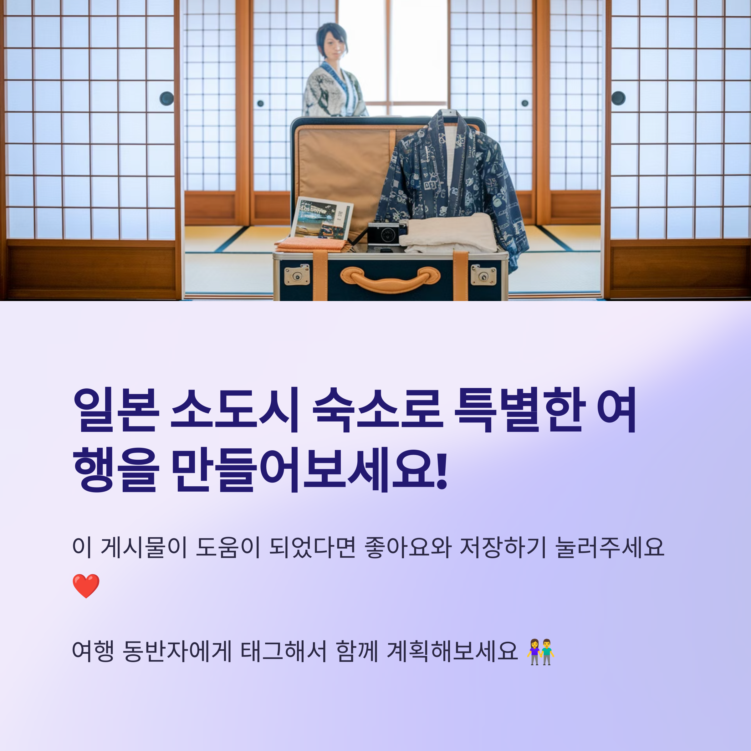 이제 일본 소도시 숙소에 대한 궁금증이 풀렸겠죠? 🏡💕 다양한 숙소에서 특별한 일본 여행을 즐겨 보세요! ✨