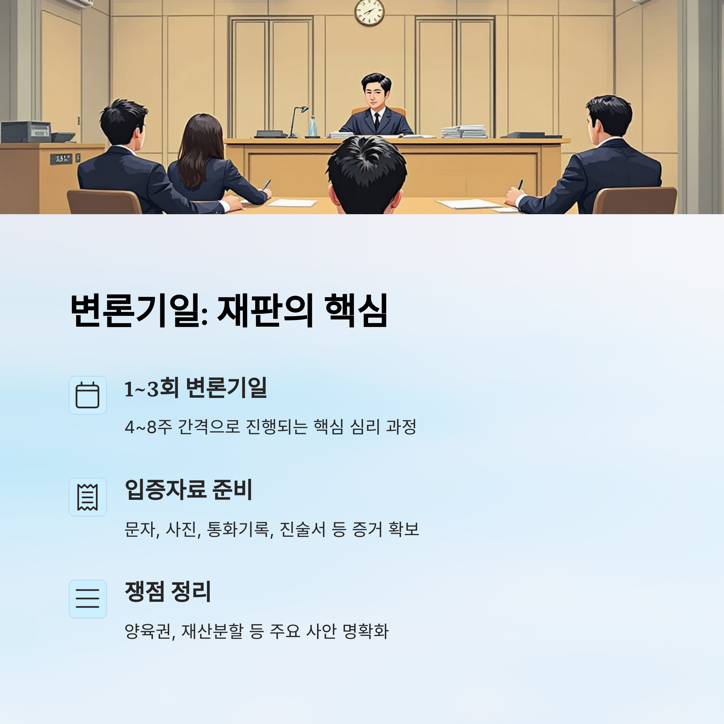 이혼 재판의 핵심은 '변론기일'이에요. 법원이 정한 날짜에 양측이 법정에 나와서 주장하고, 증거를 제출하면서 재판이 진행되는 단계죠. 보통은 서면 제출이 먼저고, 이후에 구두변론으로 이어지기도 해요. 1차, 2차, 많게는 5차 이상 열릴 수도 있어요.