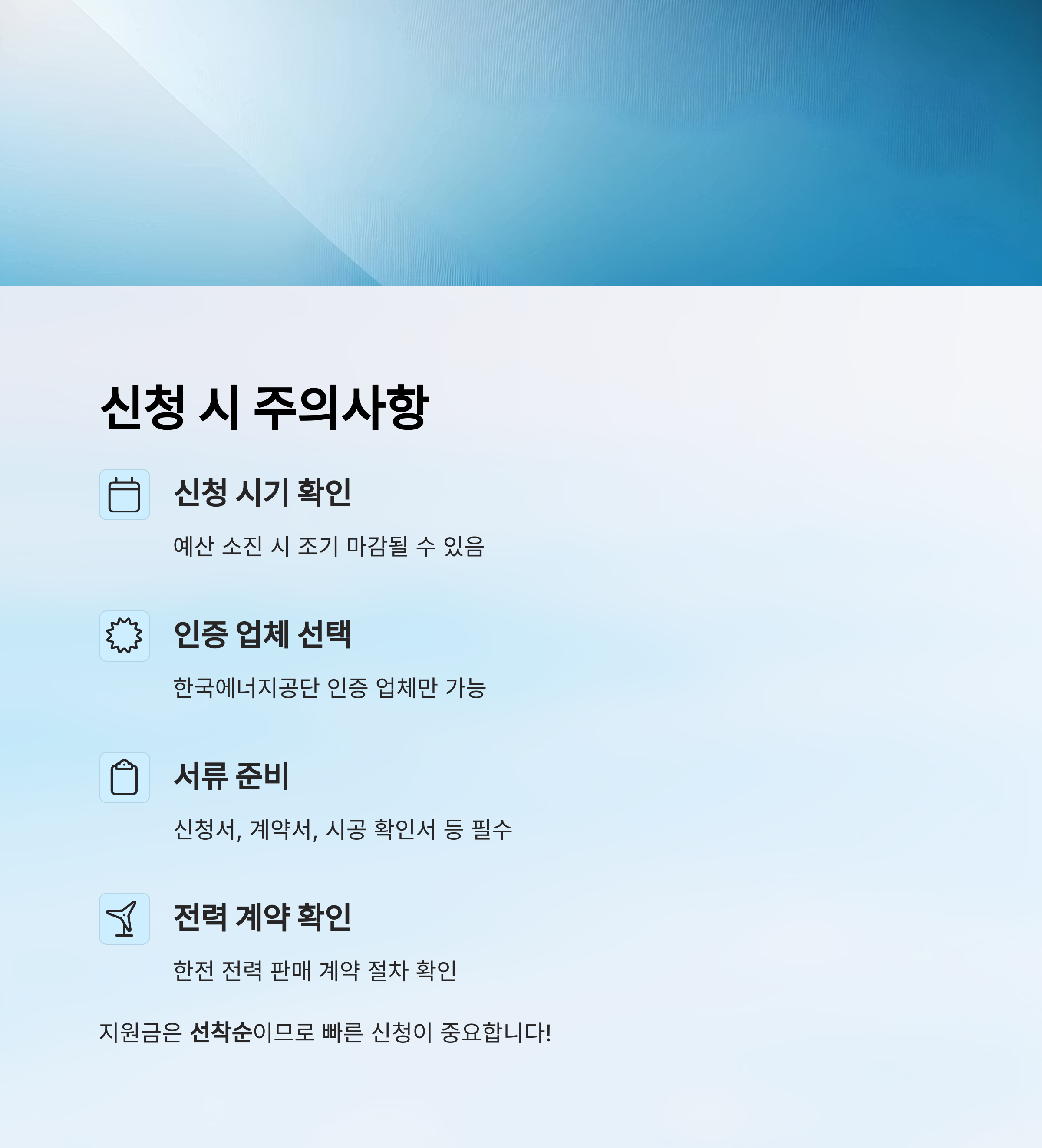 - 🛠️ 인증된 시공업체 선택 - 한국에너지공단 인증 업체에서 설치해야 보조금을 받을 수 있어요.