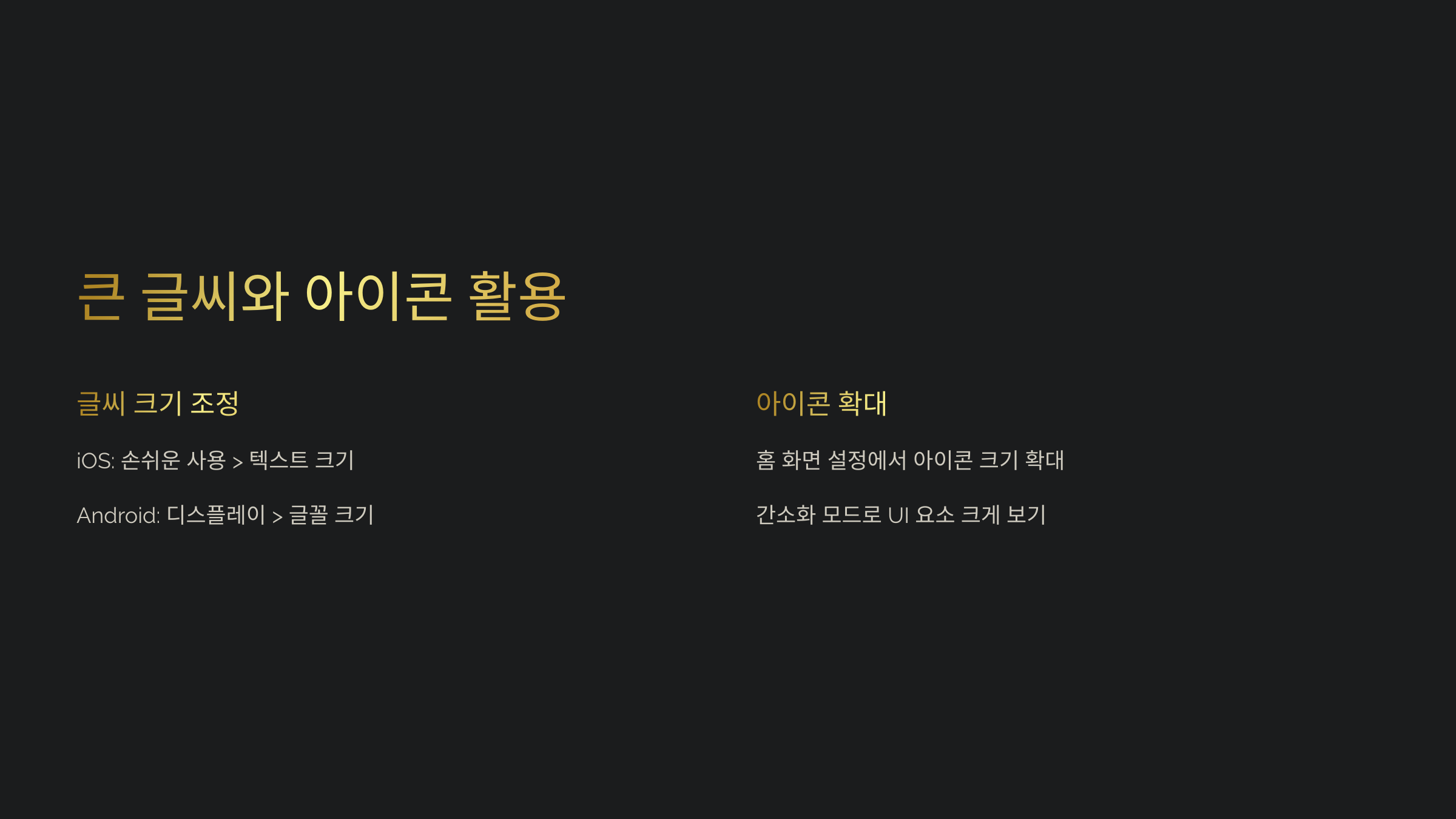 🔍 큰 글씨와 아이콘 활용