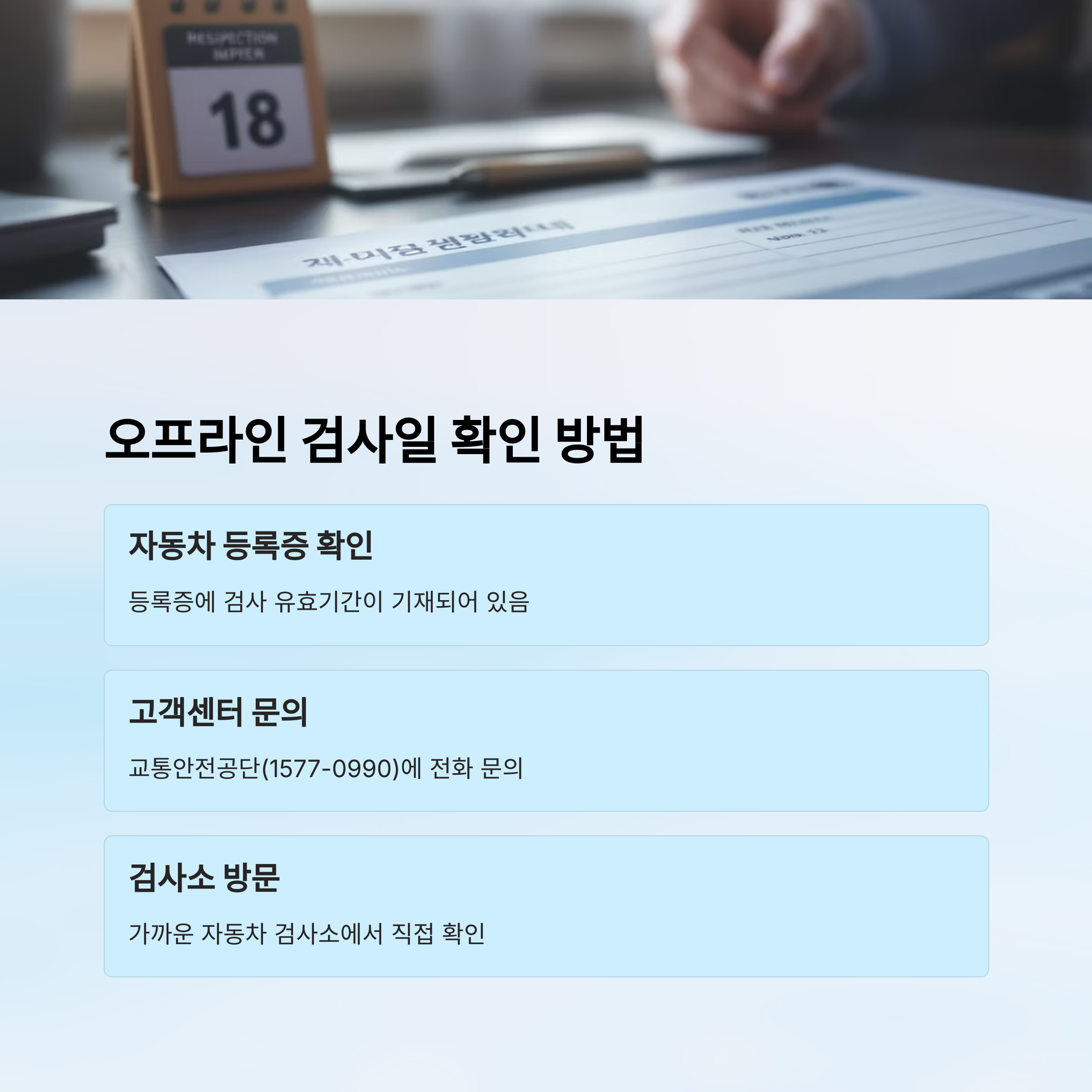 - 📞 고객센터 문의: 한국교통안전공단(☎ 1577-0990)에 전화하면 검사 기한을 안내받을 수 있어요.