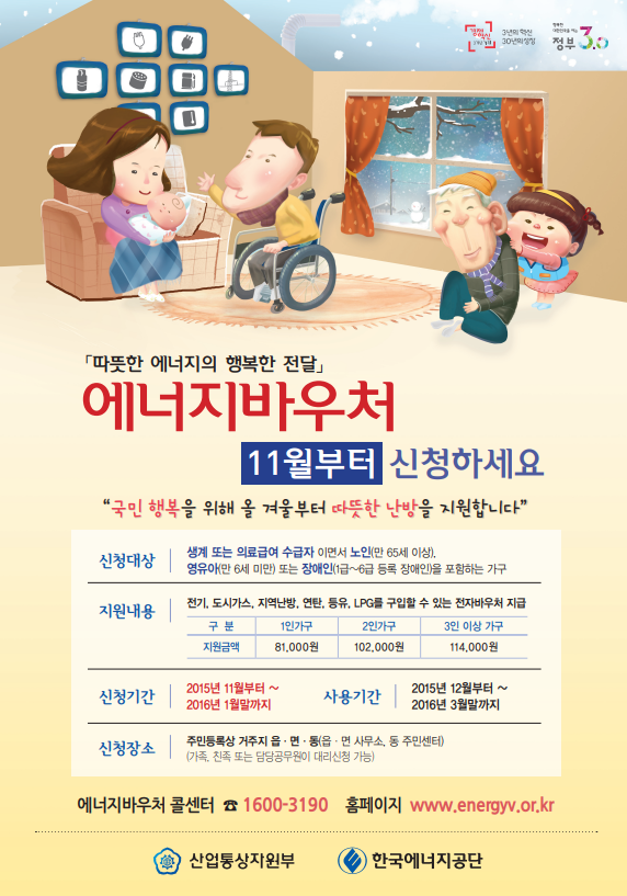 | 에너지 바우처 | 저소득층, 기초생활수급자 | 난방비 최대 20만원 쿠폰 제공 |