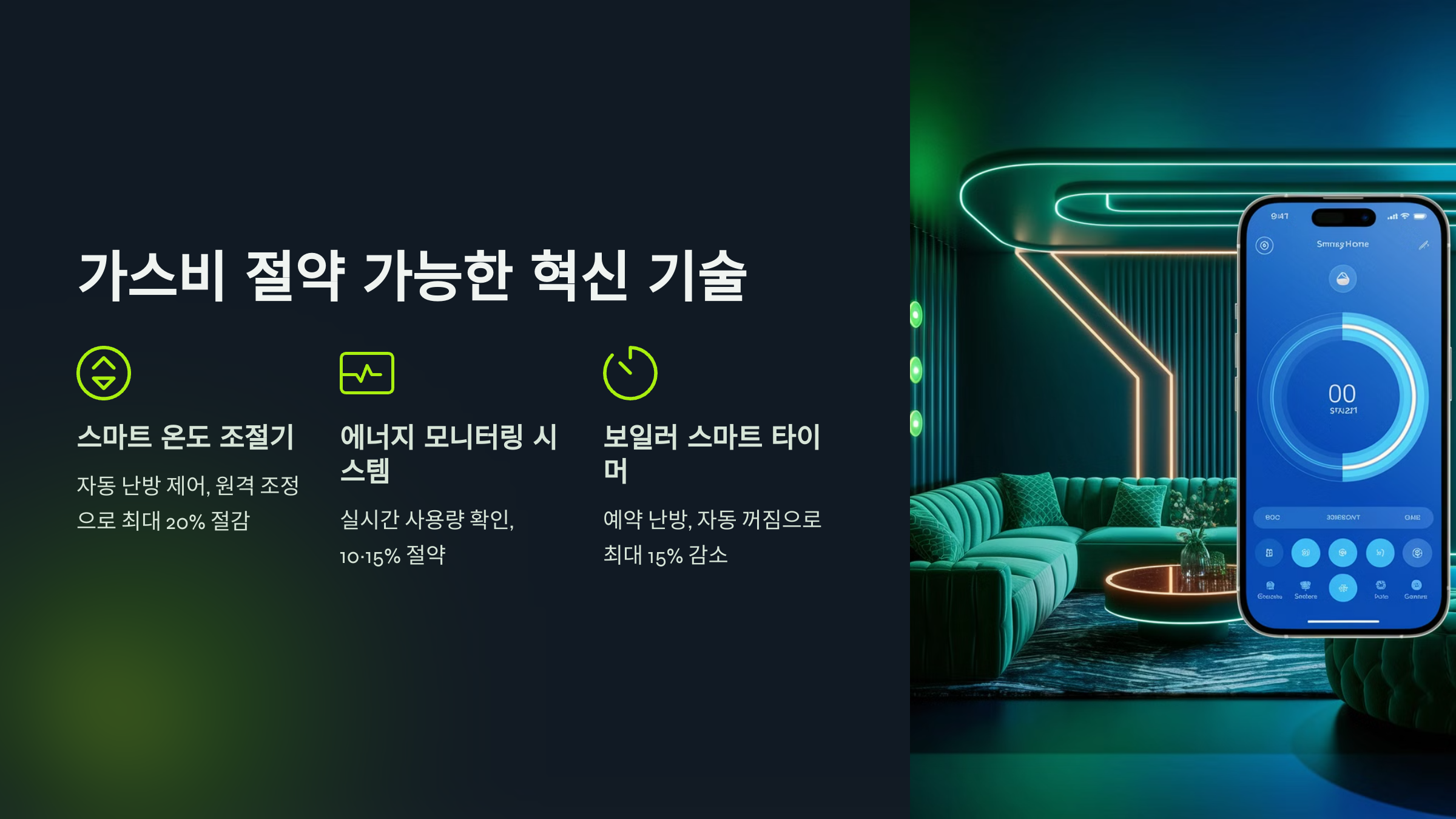 | 스마트 온도 조절기 | 자동 난방 제어, 외출 시 원격 조정 | 최대 20% 가스비 절감 |