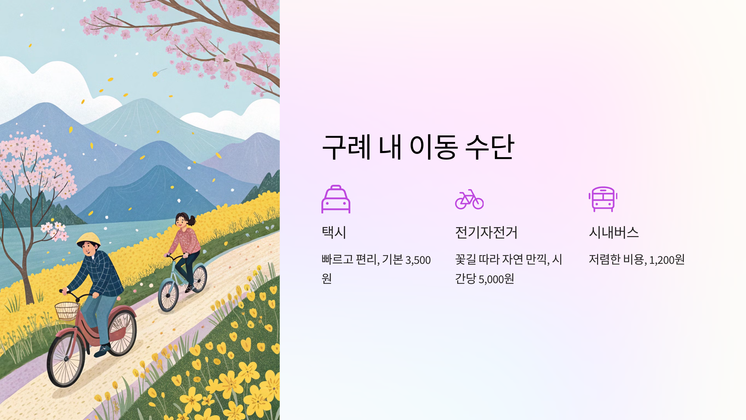 🚲 구례 내 교통수단 비교표