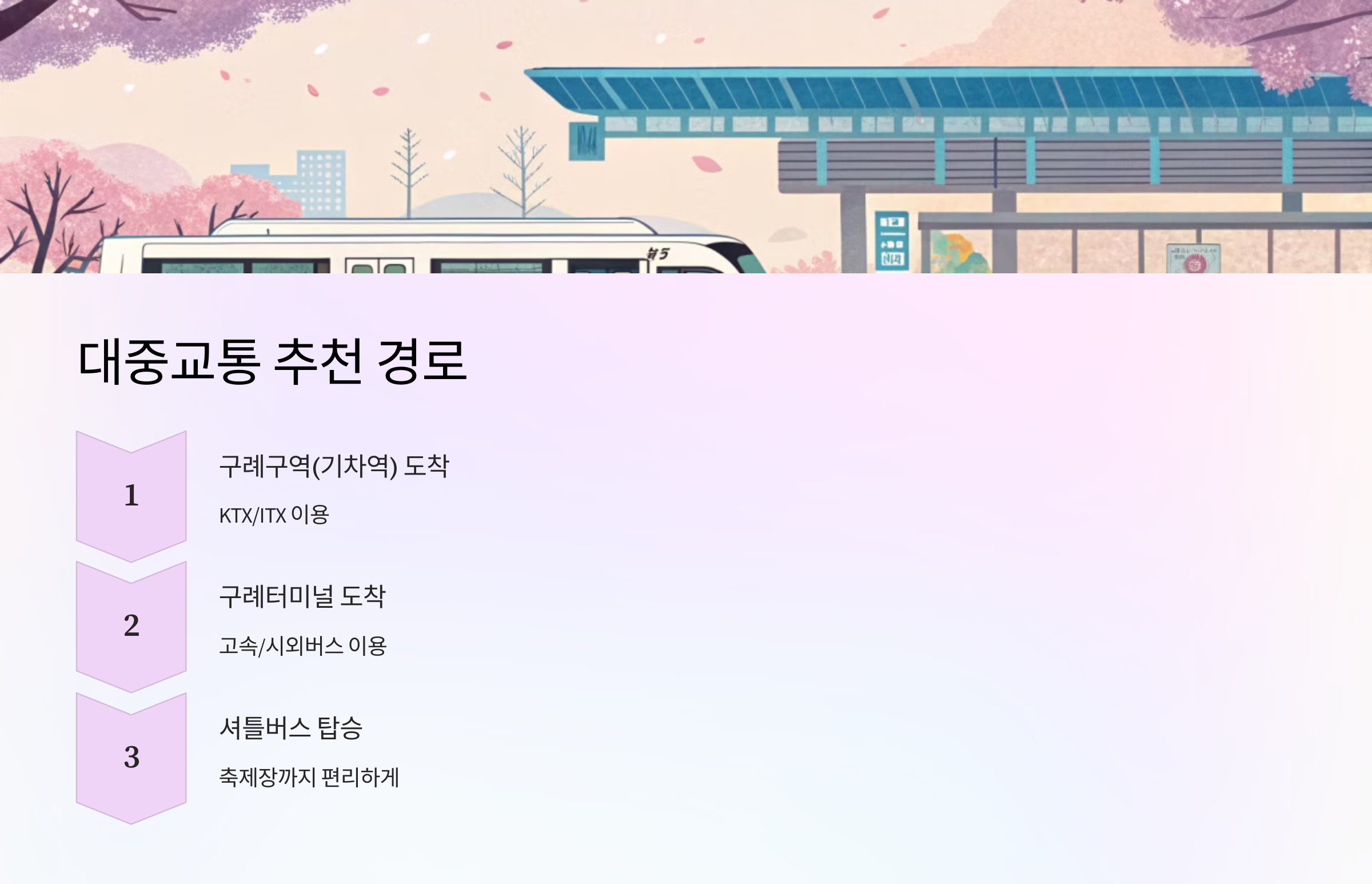 제가 생각했을 때, 차가 없는 분들도 충분히 편하게 축제를 즐길 수 있도록 교통편이 잘 마련되어 있어요. 이제 구체적인 방법을 소개해 드릴게요! 😊🚌