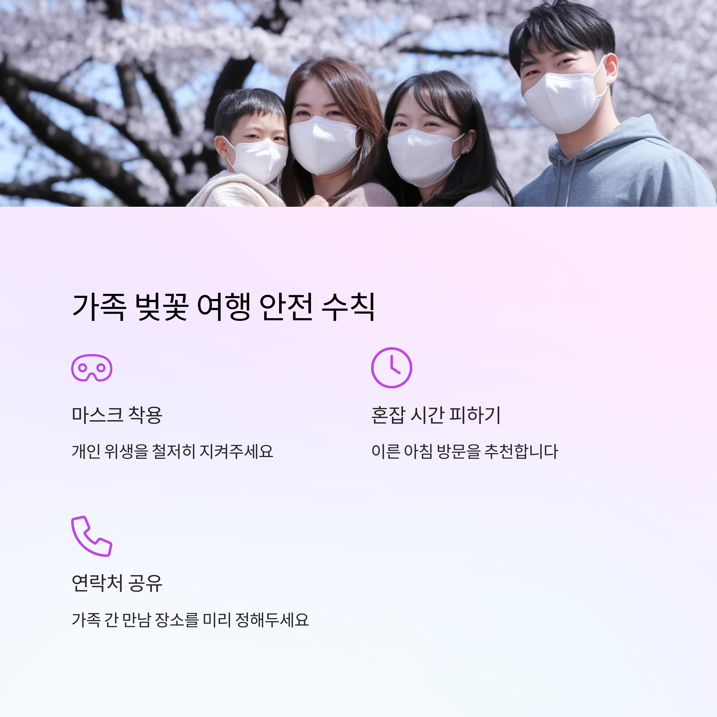 이제 가족 단위 벚꽃 여행 시 꼭 알아야 할 안전 수칙을 소개할게요! 🚸