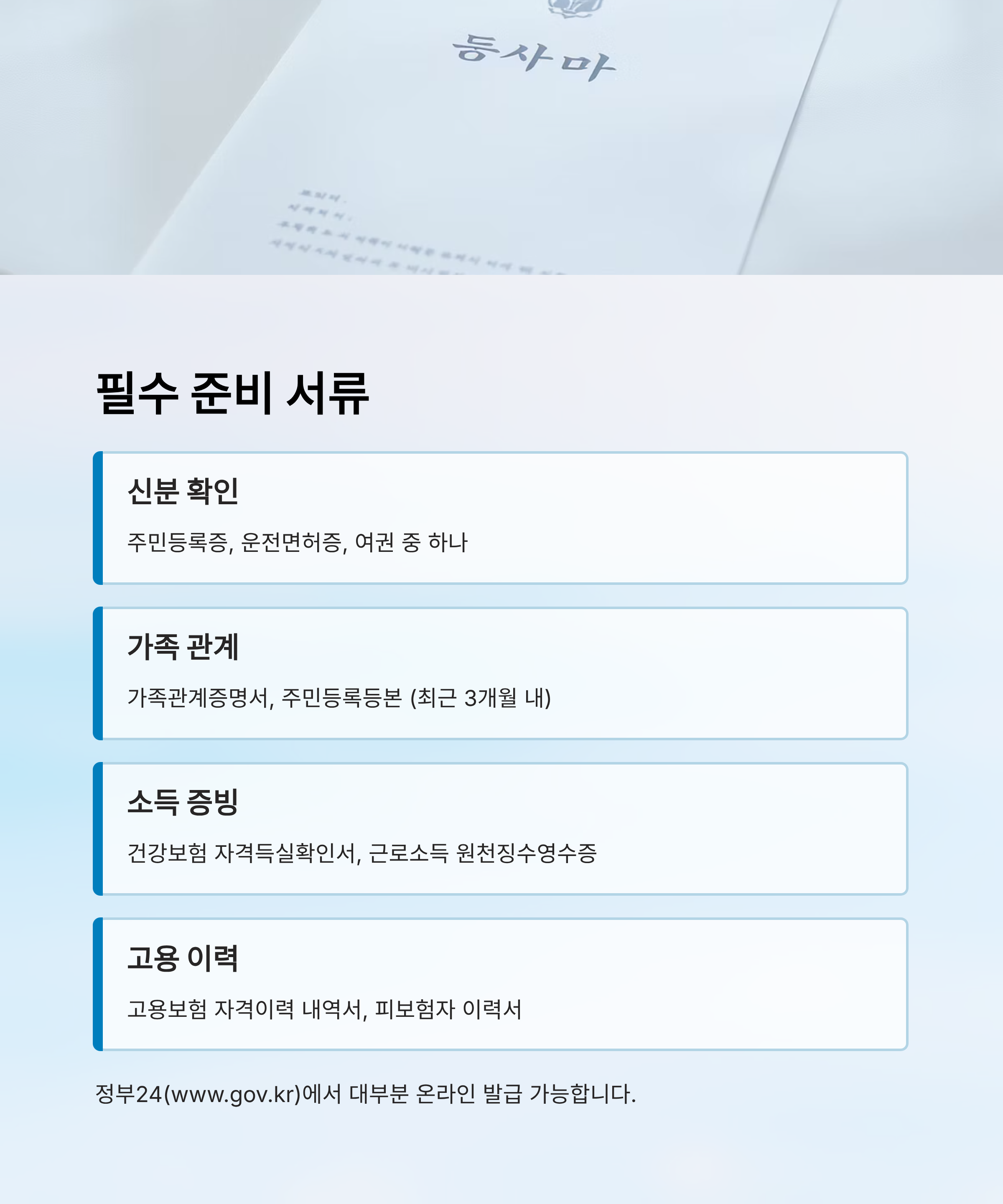 다음은 실제로 신청 시 어떤 서류를 준비해야 하는지, 방문 시에 꼭 챙겨야 할 지참물 목록까지 완벽하게 정리해 드릴게요. 이걸 알고 가면 한 번에 끝낼 수 있어요! 📁