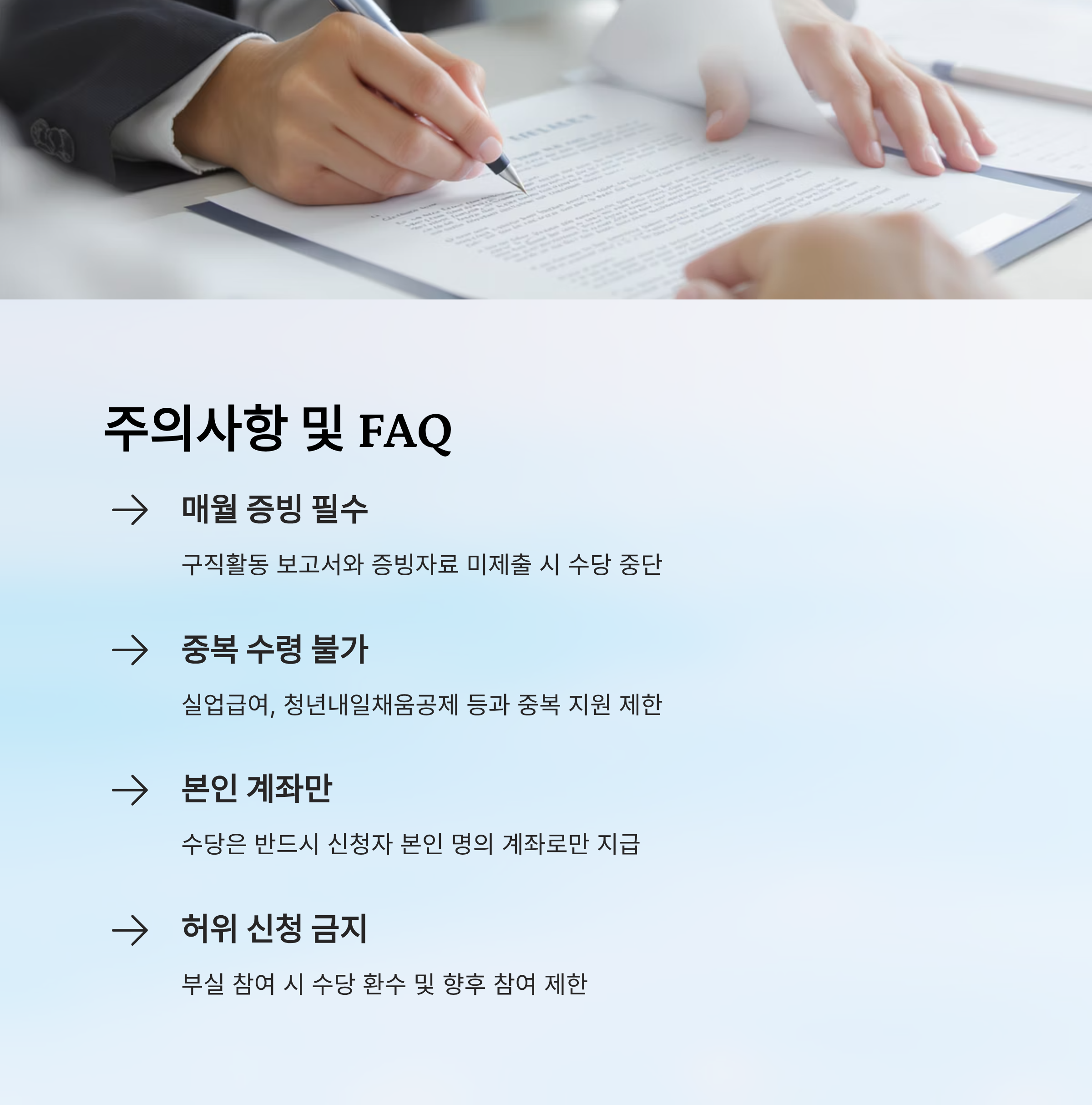| 구직활동 증빙 | 매월 증빙자료 제출 필수 |