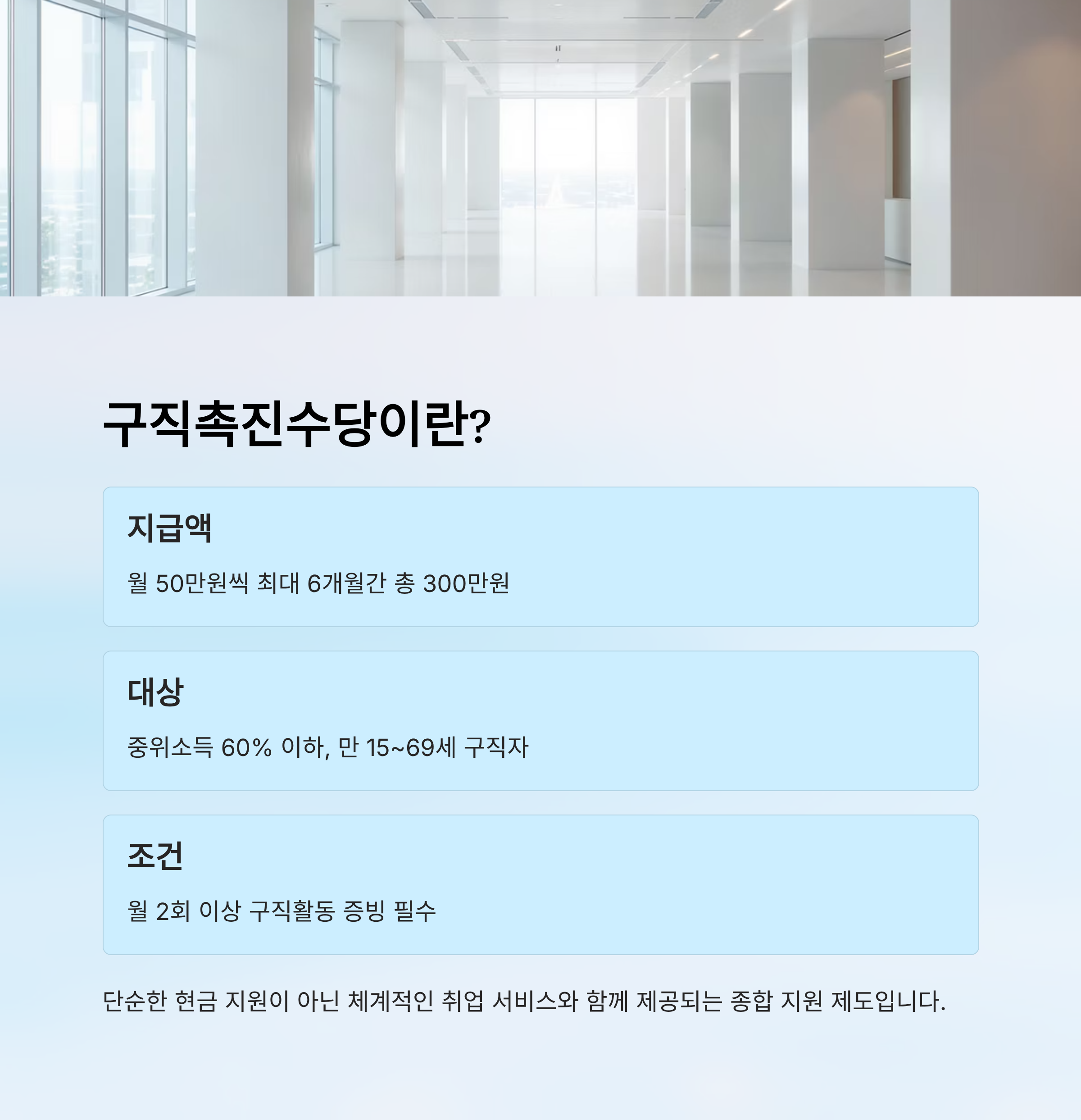 2025년 구직촉진수당은 취업을 준비하는 저소득 국민을 위한 핵심 정책이에요. 월 50만 원씩 최대 6개월, 총 300만 원까지 받을 수 있는 지원금으로, 단순한 금전 보조가 아니라 체계적인 취업 서비스를 함께 제공하는 제도랍니다.