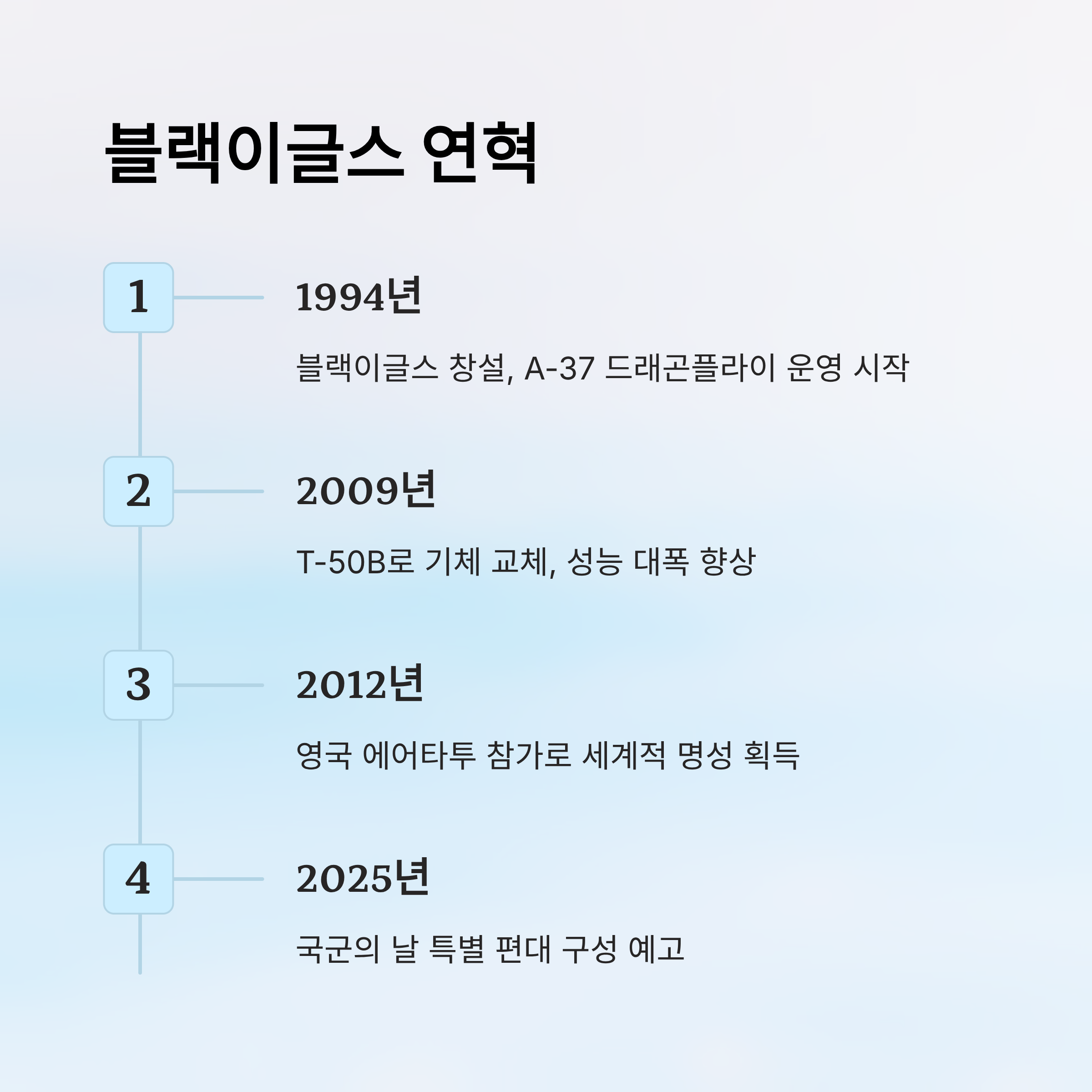 블랙이글스는 1994년에 창설되어 30년 넘게 활약해왔고, 2025년에도 더욱 화려한 비행으로 대중의 마음을 사로잡을 예정이에요. 매년 약 10만 명 이상이 에어쇼만 보러 모일 만큼 그 인기는 엄청나죠.