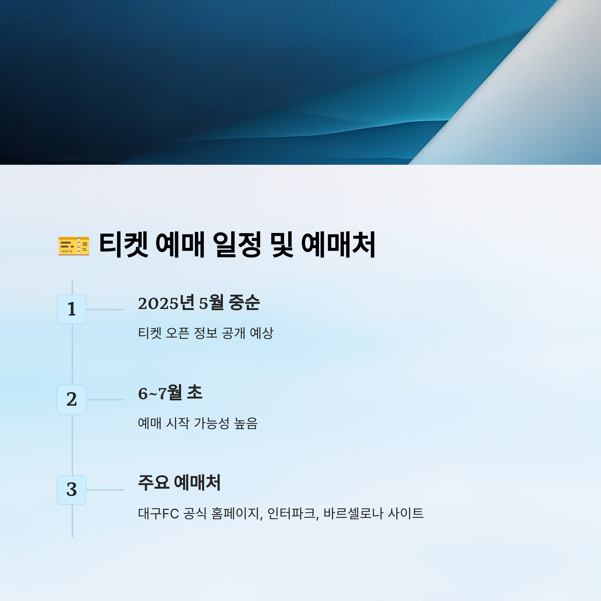 정확한 일정은 쿠팡플레이, 인터파크, 티켓링크, 대구FC 공식 홈페이지 등을 통해 5월 중순~6월 초 공식 발표를 기다리면 돼요. 📢