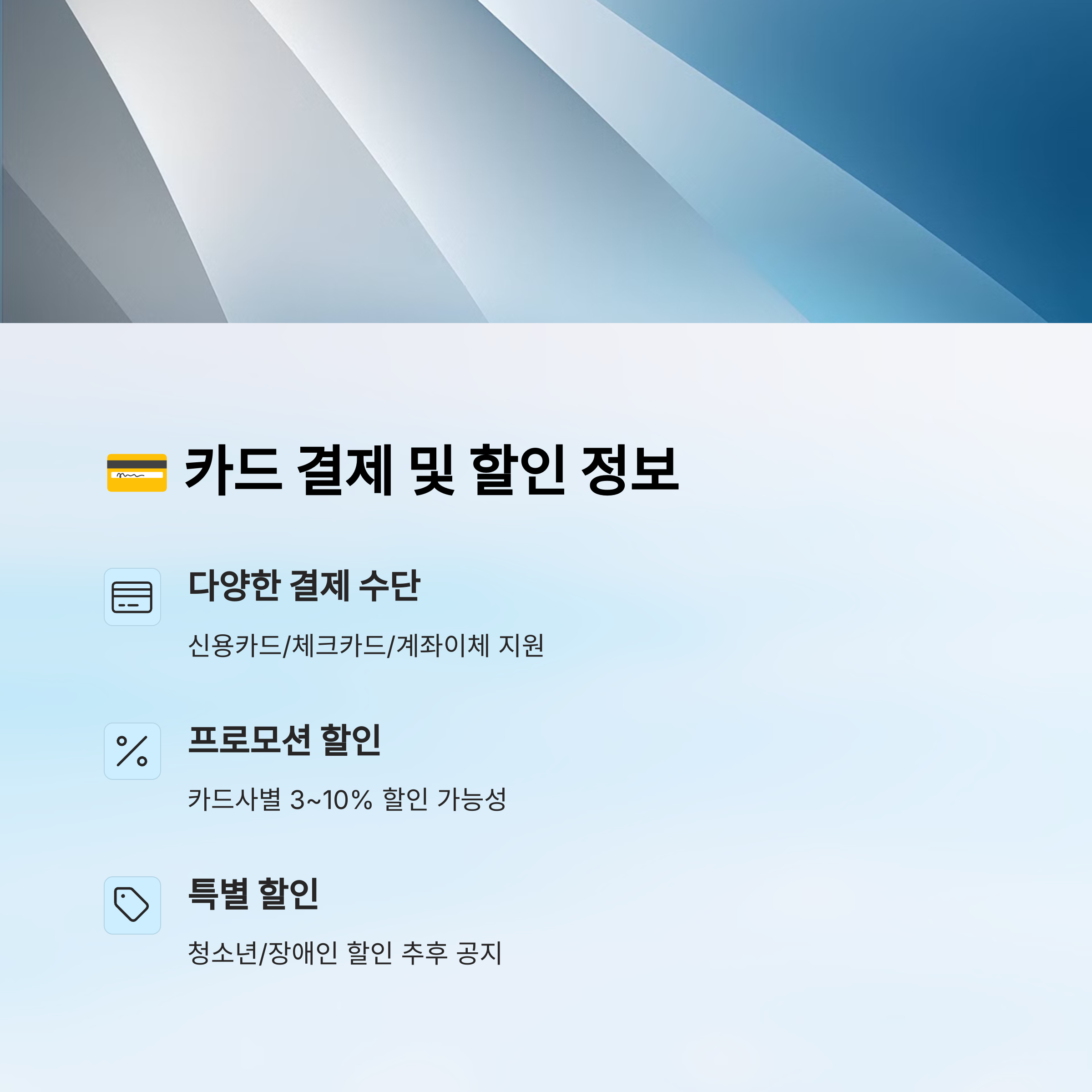 💳 카드 결제 및 할인 정보