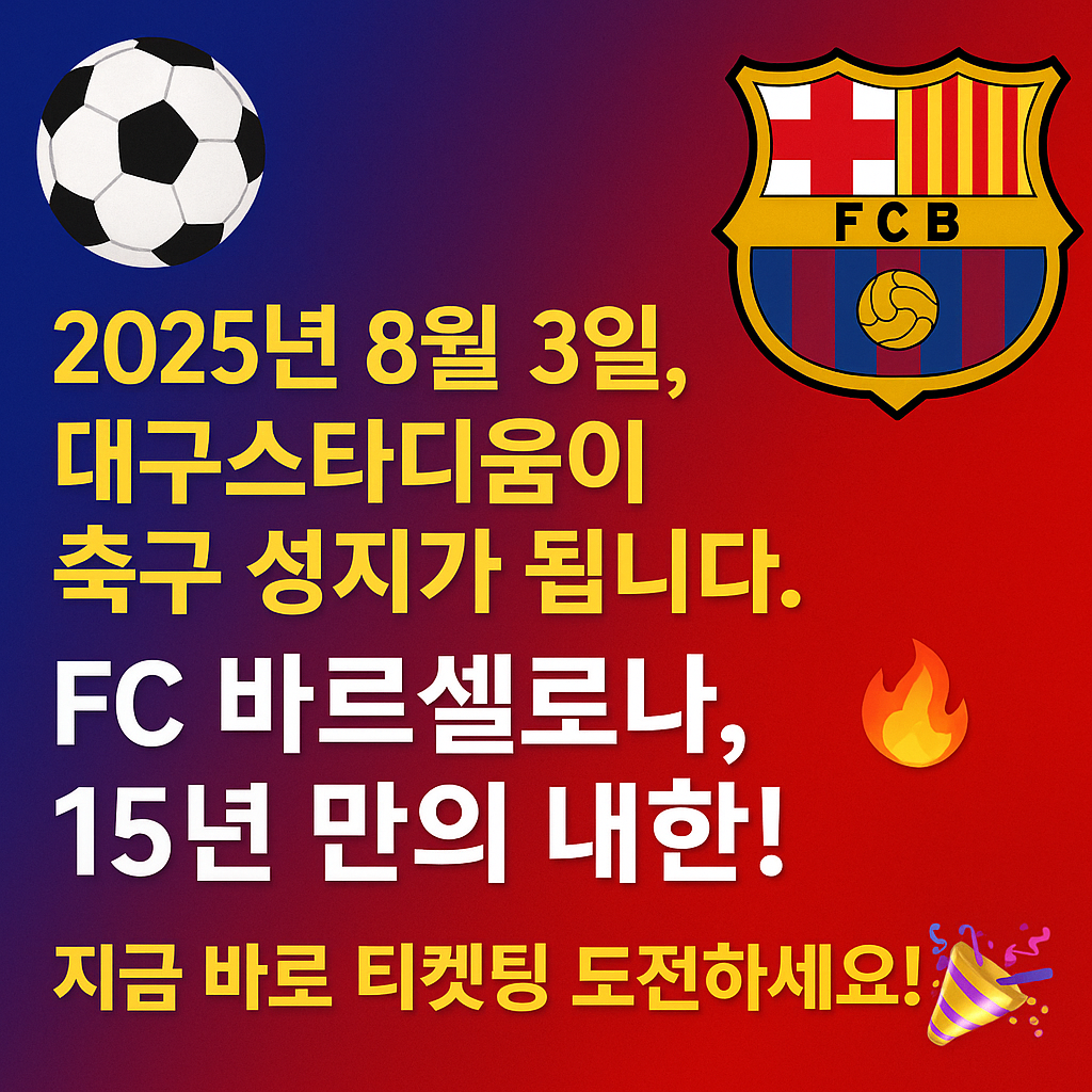 항상 공식 예매처를 통해 안전하게 티켓을 구매하시고, 대구스타디움에서 바르셀로나의 세계 최강 플레이를 직접 느껴보세요. ⚽🔥