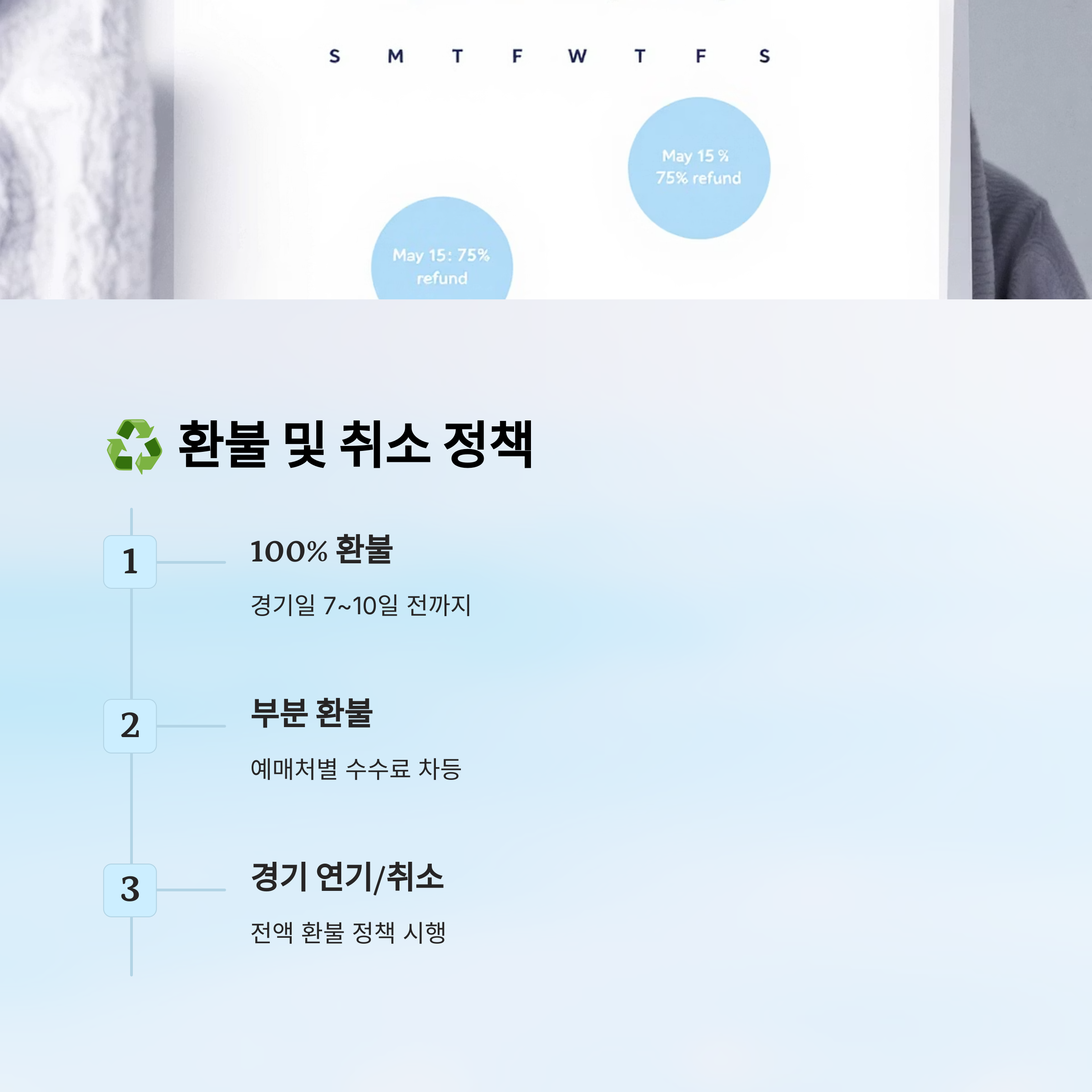 보통 경기 하루 전 오후 5시까지 환불이 가능하지만, 수수료가 발생하는 경우가 많아요. 🧾